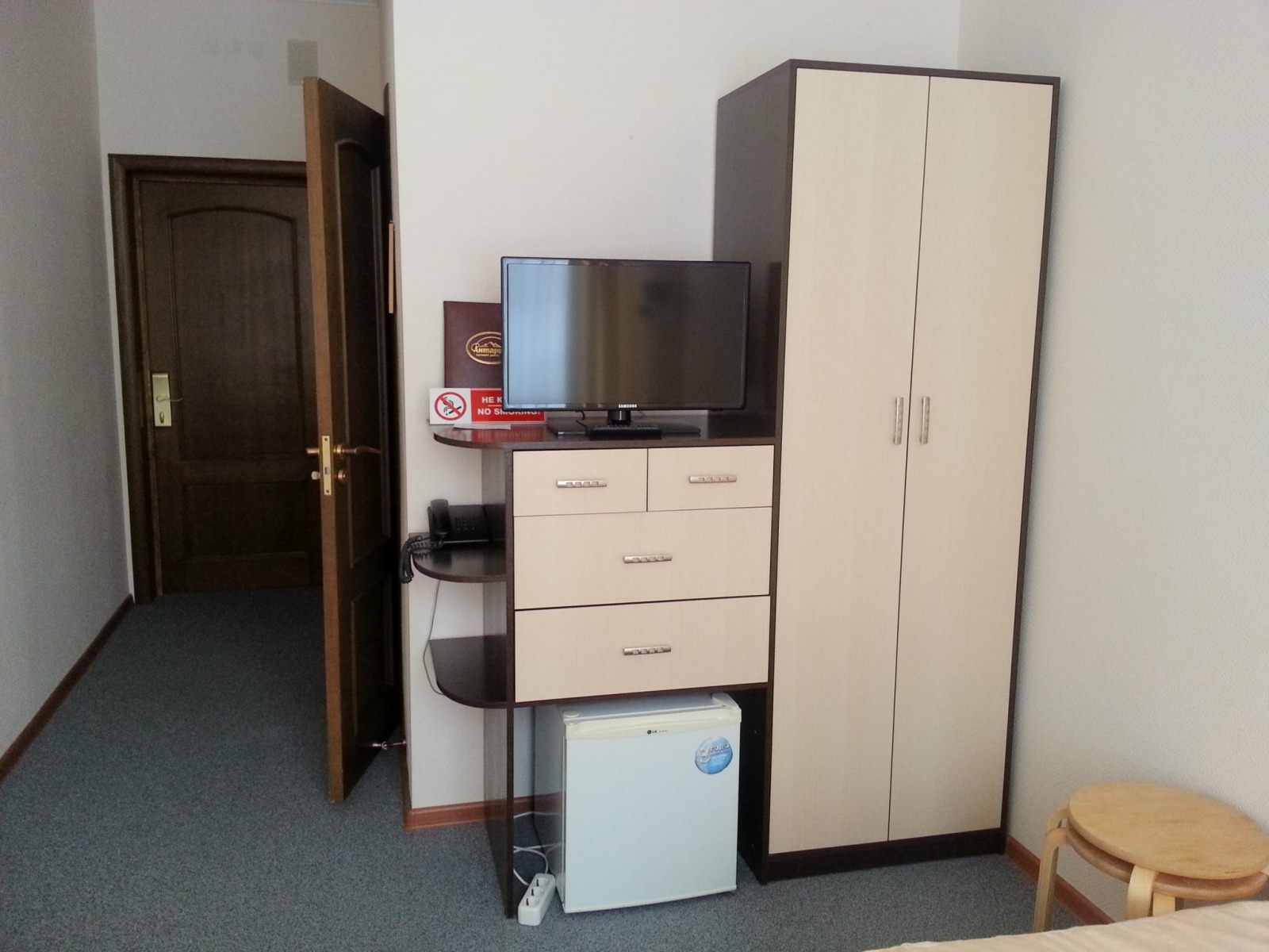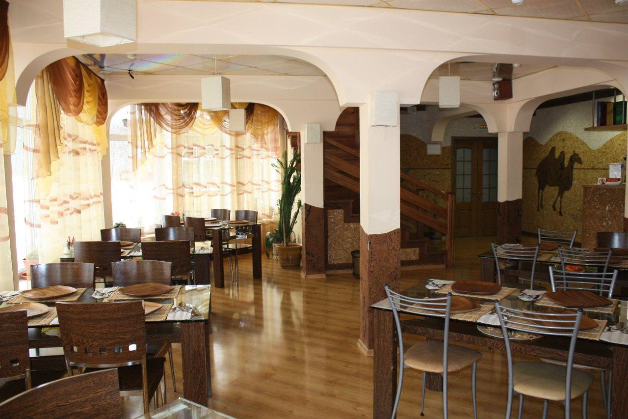 Гостиничный корпус располагается на трёх этажах: 1 этаж – просторный холл с уголком отдыха при Reception; аквариум; ресторан в арабском стиле на 48 человек; раздевалка и шкафчики для обуви при входе; зимний сад (бассейн с рыбами, искусственный "водопад", мягкий уголок); бамбуковая комната для отдыха; выход из жилой зоны в зону купания и отдыха (мягкий уголок, комната для курения со столом, втягивающим дым, раздевалки, душ); 14 стандартных 2-х местных номеров. 2 этаж – бар с видом на бассейн, выдержанный в русском стиле; 12 стандартных 2-х местных номеров; 2 стандартных улучшенных номера; 2 люкса; кафе на 48 человек, также выдержанное в русском стиле; бильярдная. 3 этаж (мансарда) – номера без удобств; комнаты для персонала; прачечная; подсобные помещения.