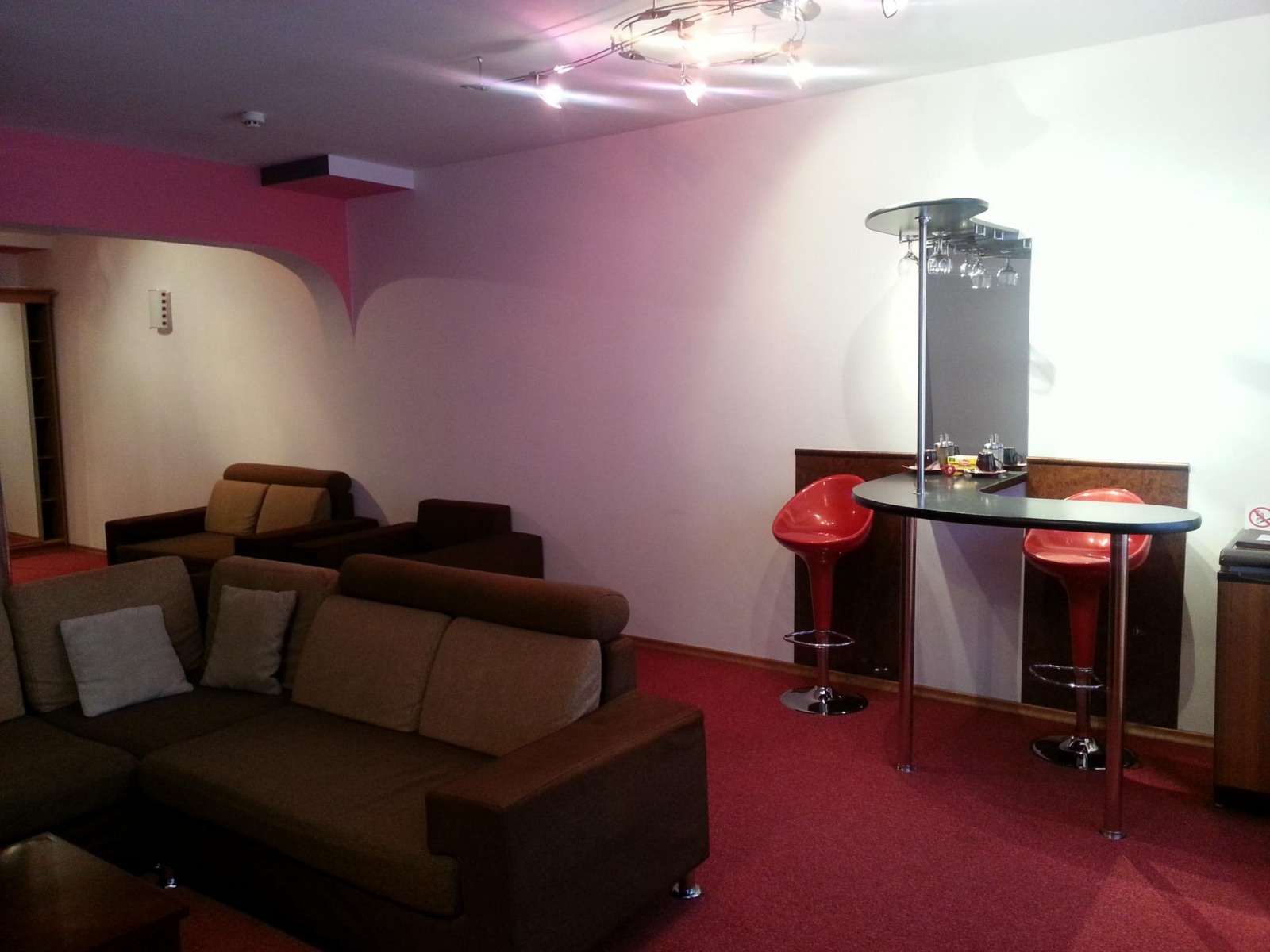 Аква-корпус: мягкий уголок, массажные кресла, бар, комната для курения со столом, втягивающим дым, раздевалки (индивидуальные шкафы с ключами), душ.
