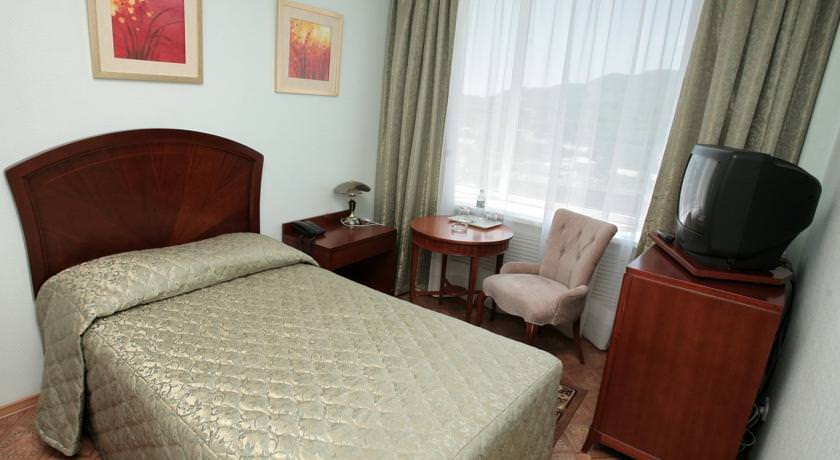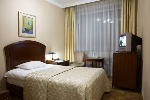 Уютный номер для одного гостя оформлен в классическом стиле и оснащен современной мебелью. В распоряжении проживающих: кровать 1200*2000 см. с прикроватной тумбочкой, шкаф, журнальный стол, изящные светильники, холодильник, телевизор, кабельное телевидение и телефон с междугородним выходом. В ванной комнате с ванной и санузлом гости найдут комплект полотенец, набор туалетных принадлежностей, халаты, тапочки и фен.