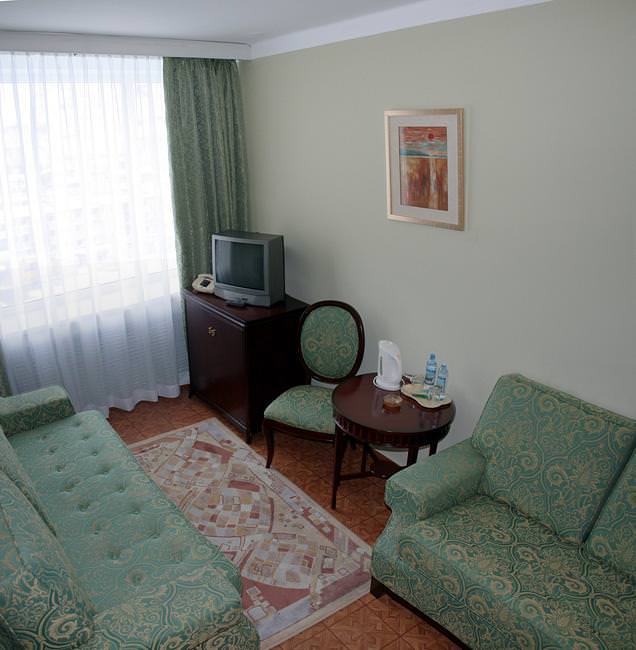 2 комнаты. Номер оснащен: двумя раздельными кроватями, телевизором, кабельным телевидением, телефоном (городская, междугородняя, международная связь), выходом в интернет, холодильником. Ванная комната располагает ванной и санузлом, гостям предоставляются туалетные принадлежности, полотенца, фен, халаты и тапочки.