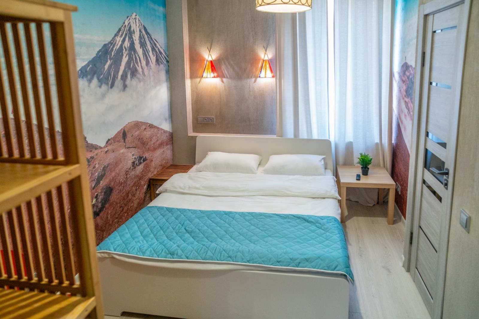 Двухместный номер с красивым видом из окна. В апартаментах есть все необходимое для комфортного проживания, оборудованная кухня, обеденная зона, двуспальная кровать, телевизор, холодильник, стиральная машина, микроволновая печь, собственная ванная комната с душем.
