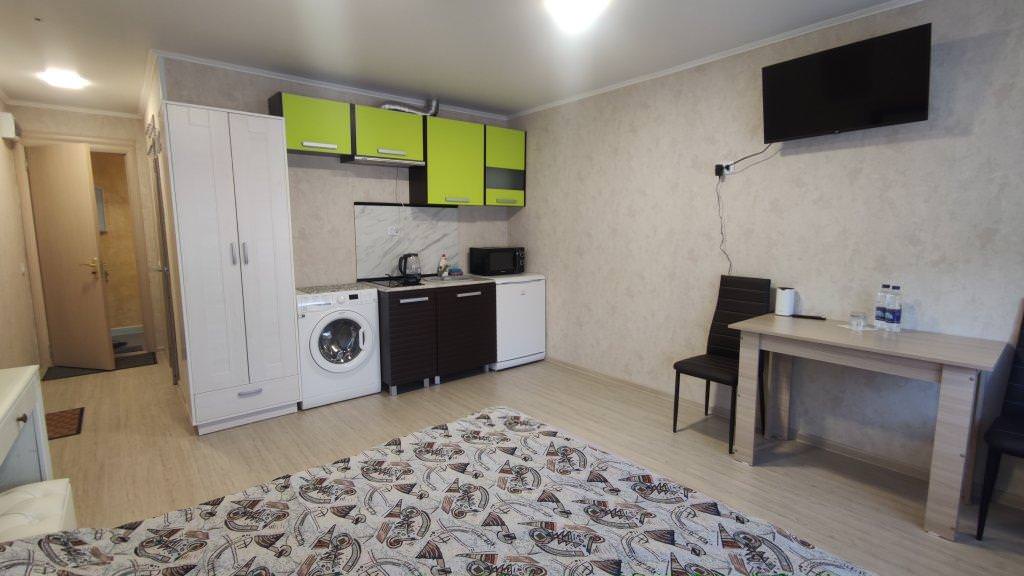 Двухместный номер с красивым видом из окна. В апартаментах есть все необходимое для комфортного проживания, оборудованная кухня, обеденная зона, двуспальная кровать, телевизор, холодильник, стиральная машина, микроволновая печь, собственная ванная комната с душем.