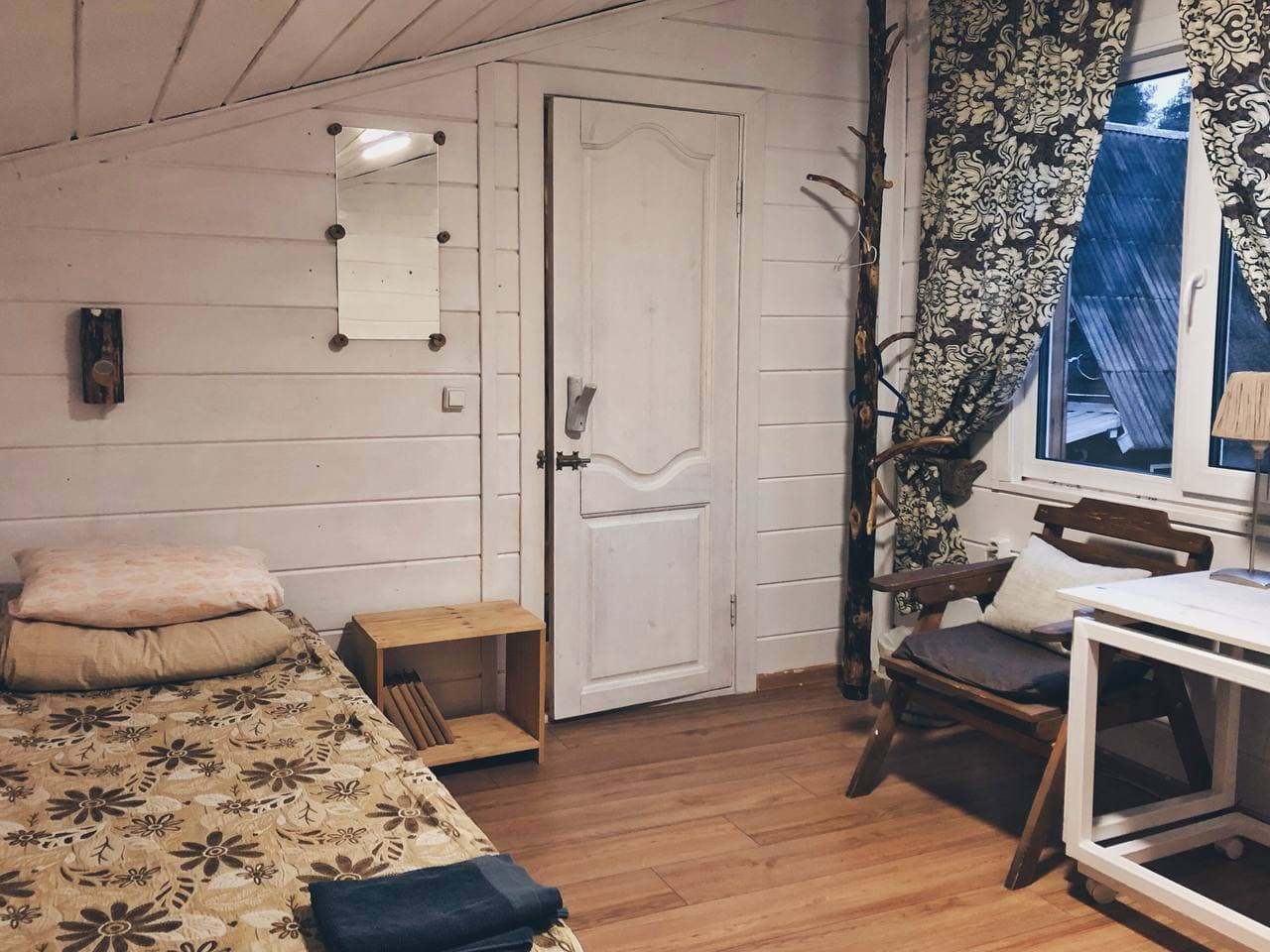 Трехместный номер на 2м этаже в Доме Хаски с двуспальной и одной односпальной кроватью. Один санузел с душевой на два номера