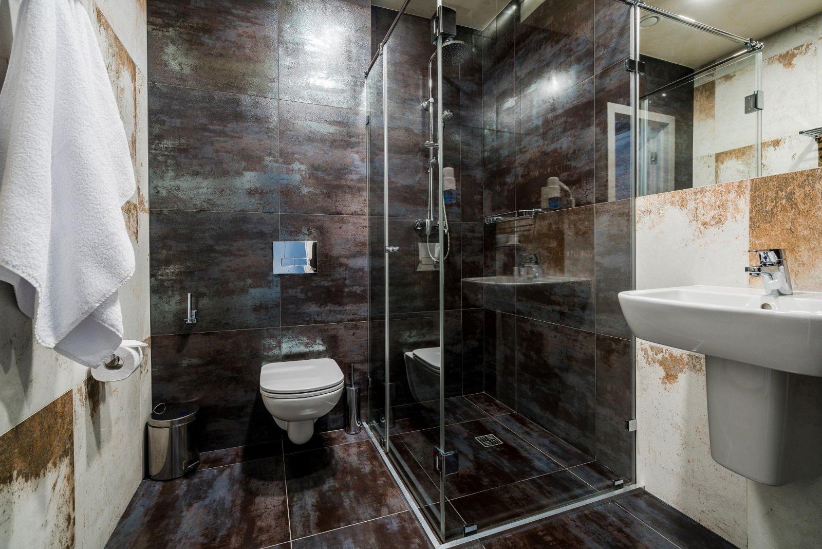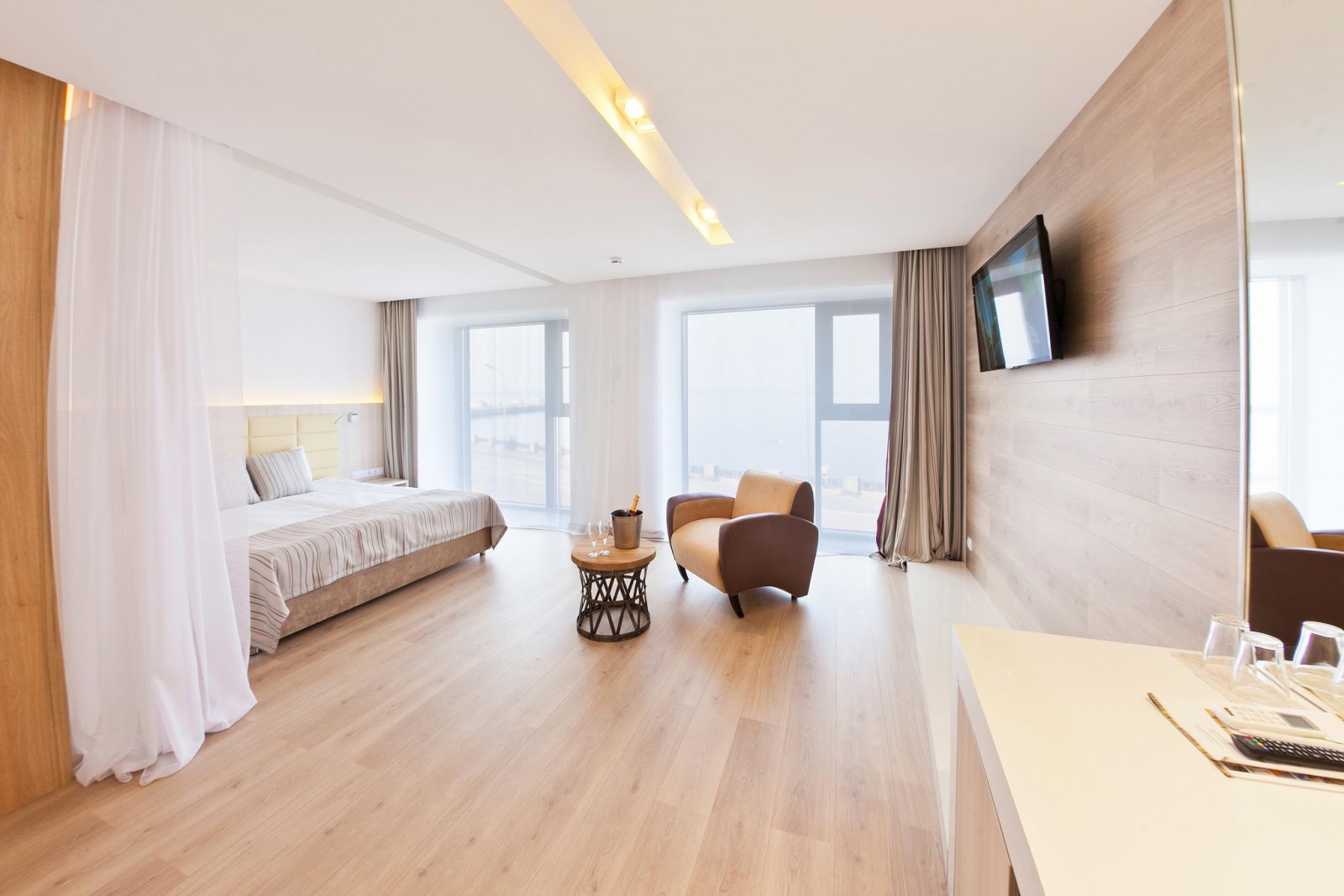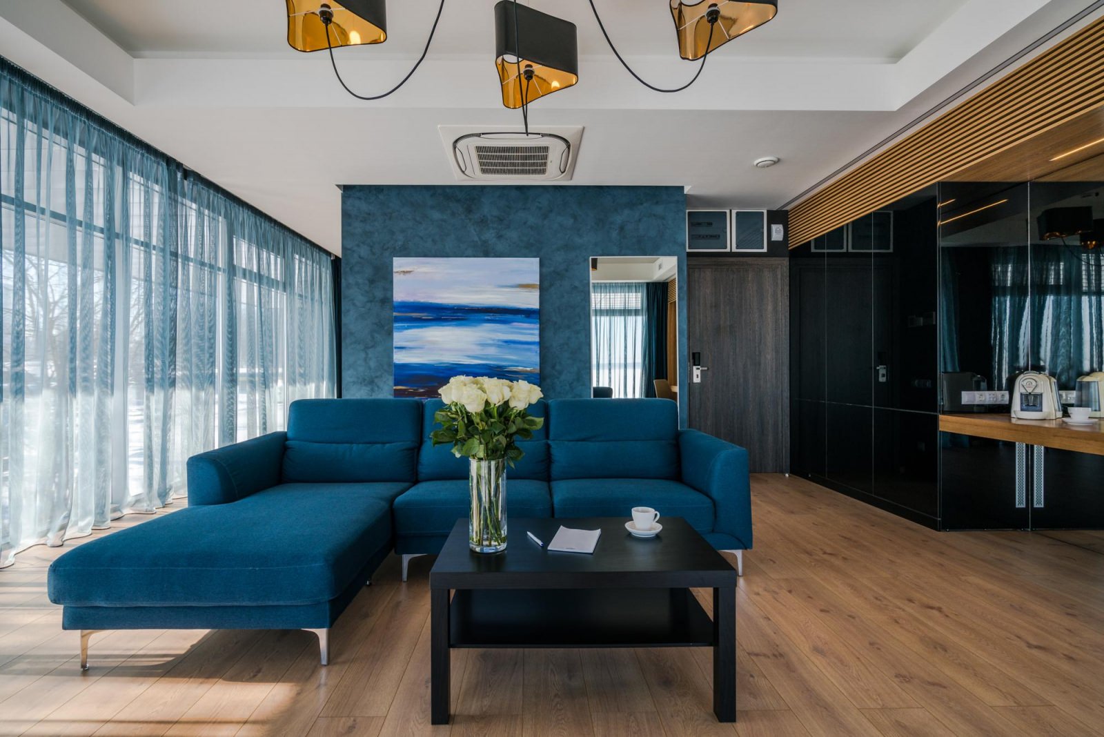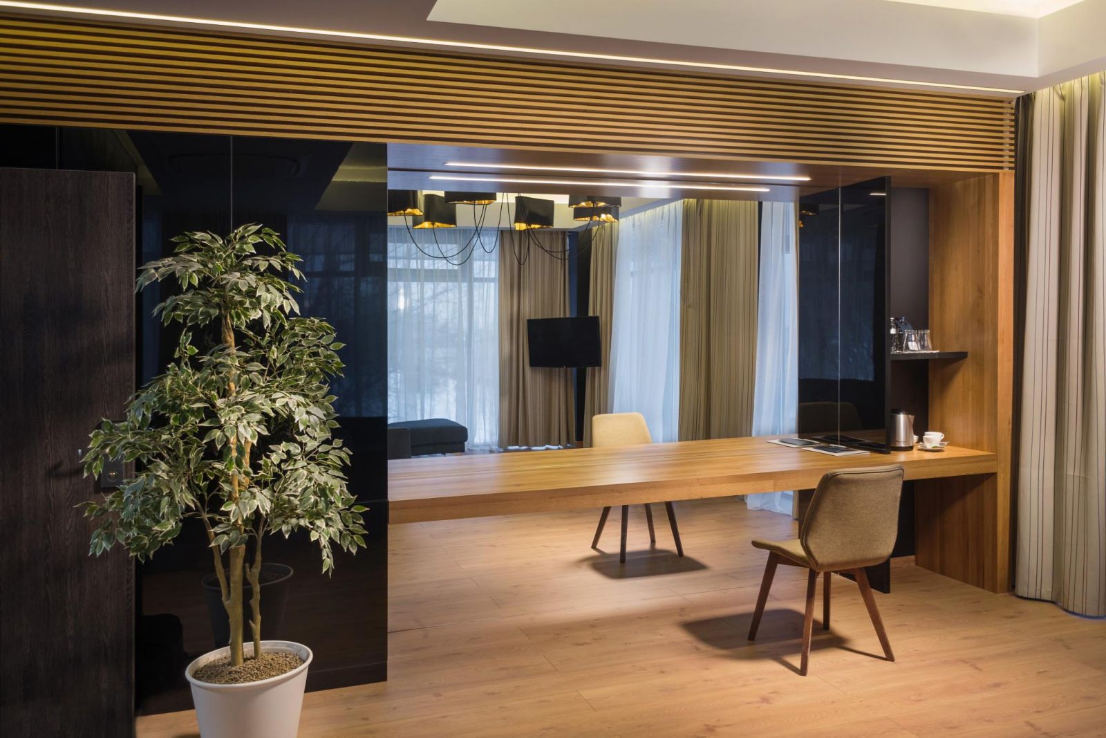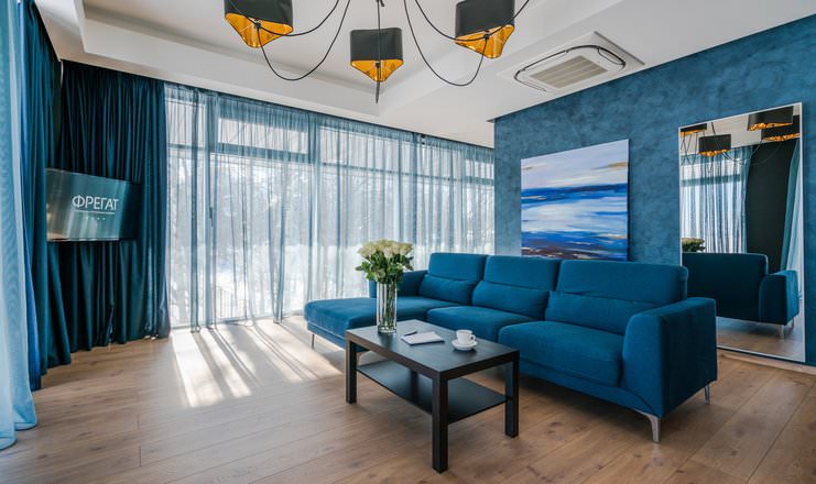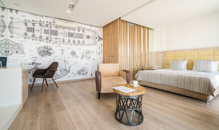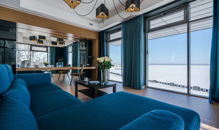 В наличии ТВ, сейф, телефон, мини-бар, кондиционер, Wi-Fi, гладильная доска и утюг. Гости будут комфортно себя чувствовать себя в халатах и тапочках. Также комфорт обеспечит наличие полов с подогревом.