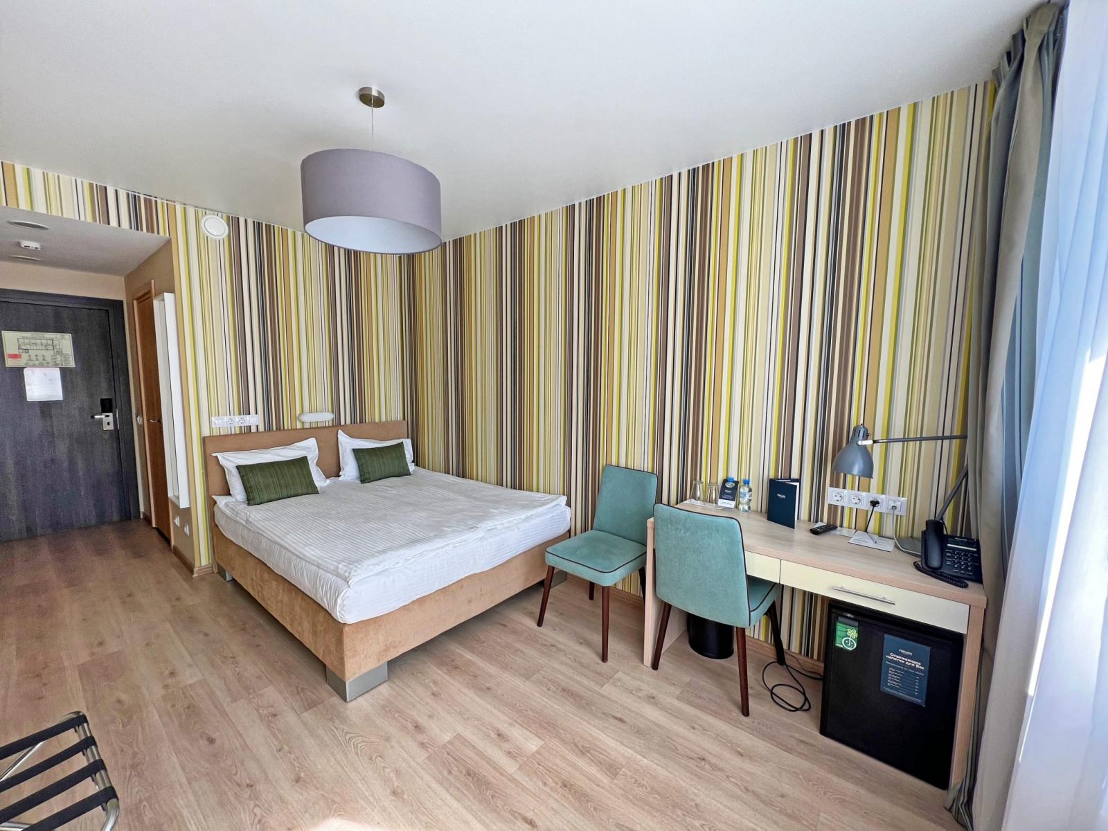 Из оснащения имеются телефон, сейф, фен и мини-бар. В номере есть Wi-Fi и ТВ.