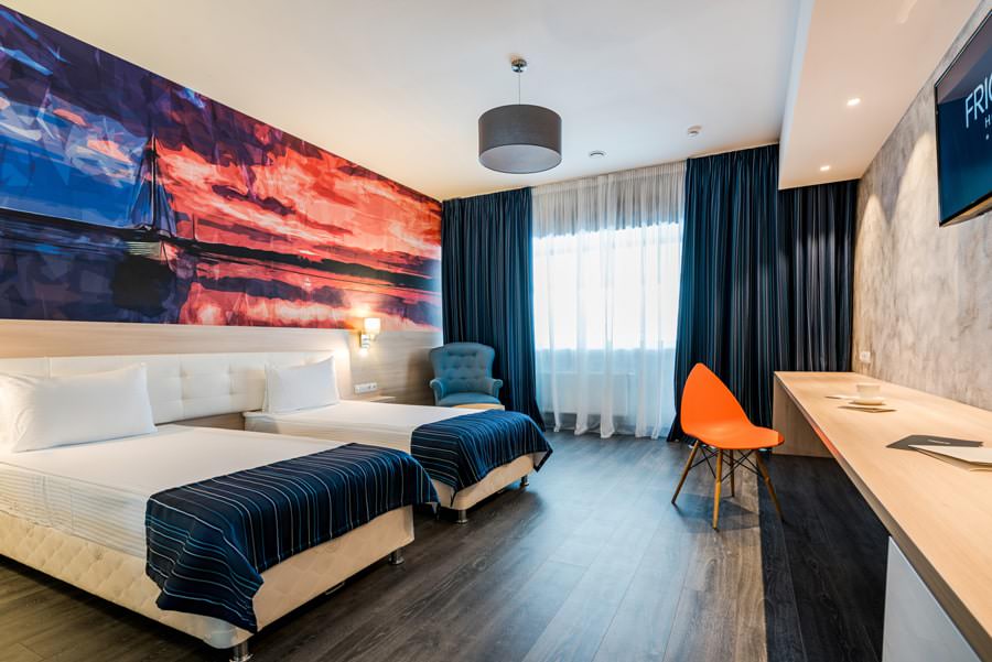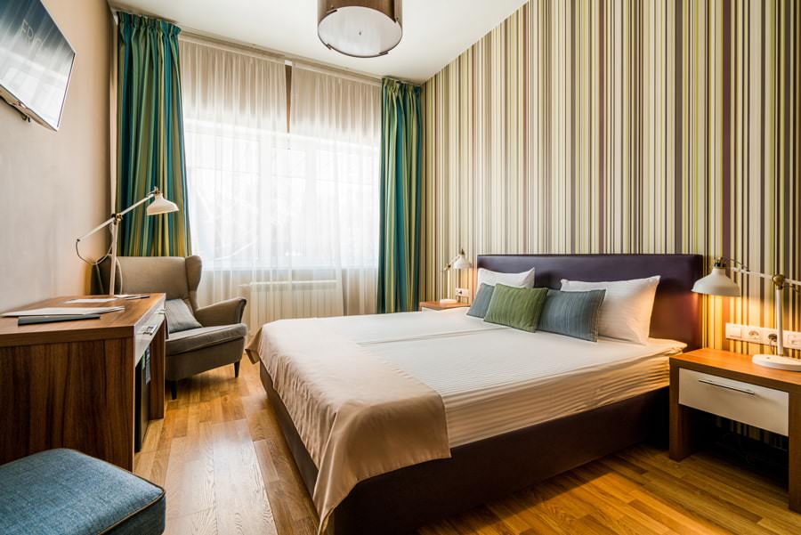 Номер площадью 24 кв.м с двумя раздельными кроватями или одной двуспальной.