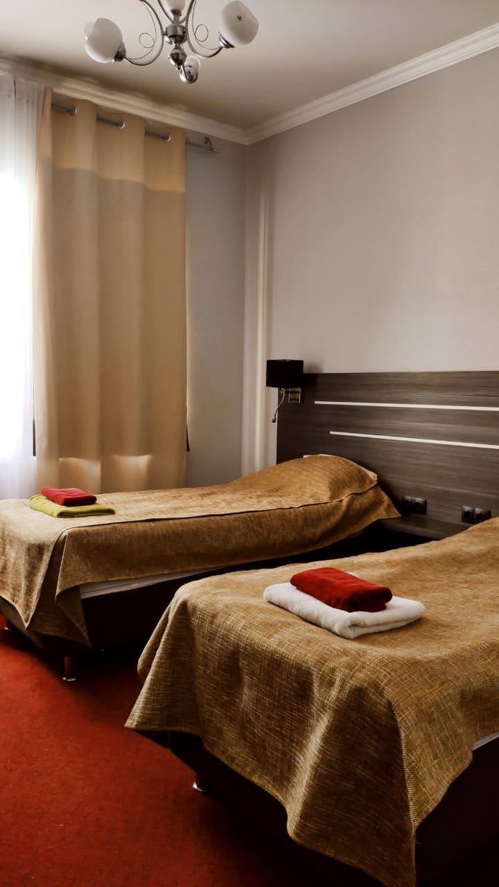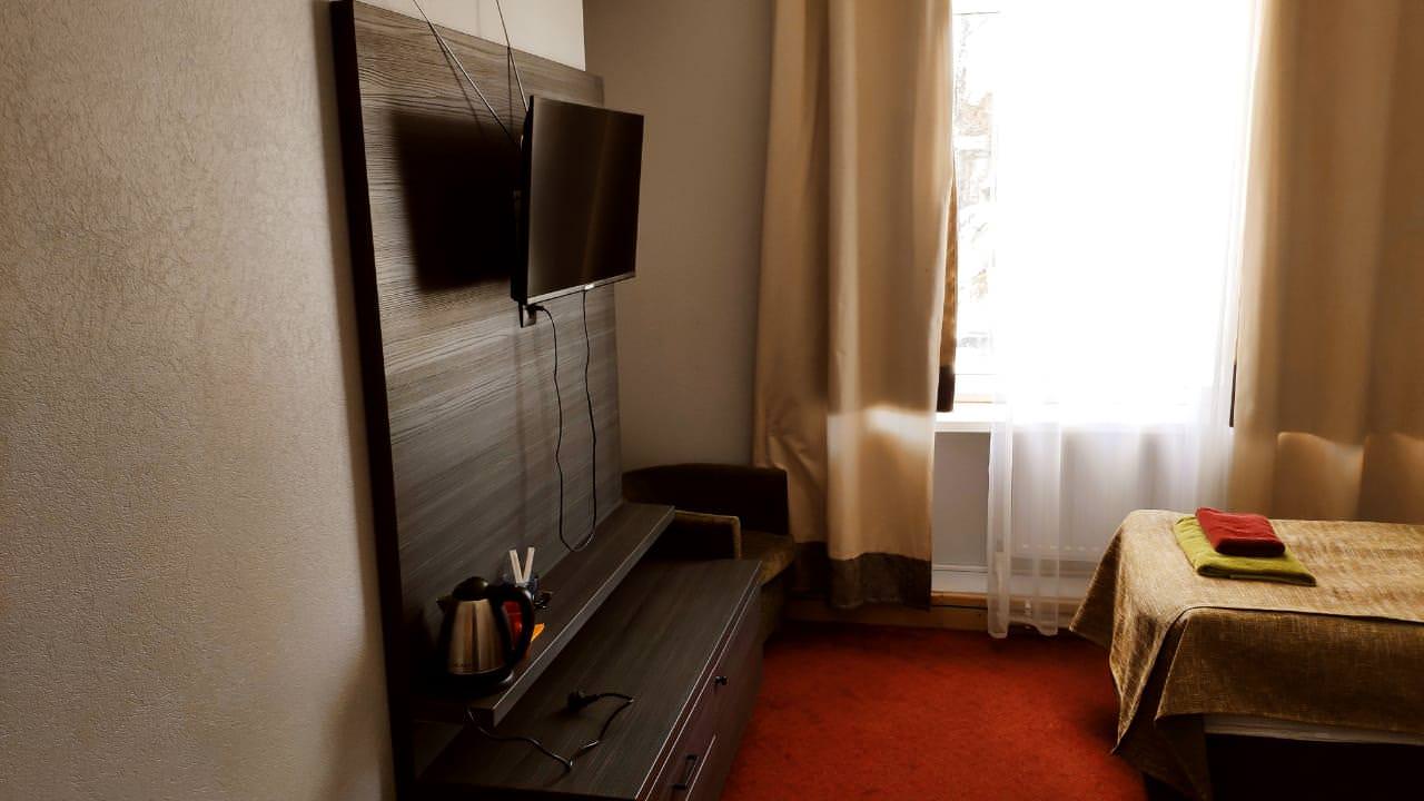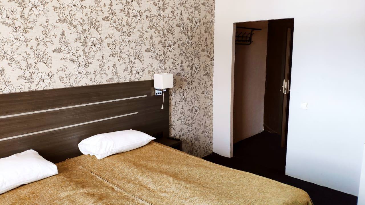 Уютный номер с отдельной ванной комнатой и туалетом. Номер оборудован всем необходимым: 2 кровати, прикроватная тумба, шкаф, стол, стул, шкаф, телевизор с цифровым телевидением.