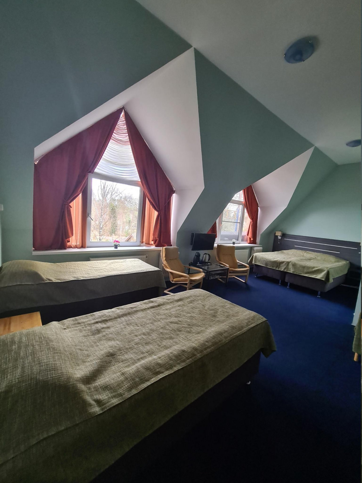 Уютный номер с отдельной ванной комнатой и туалетом. Номер оборудован всем необходимым: 4 кровати, кресла, холодильник, чайник, прикроватная тумба, шкаф, стол, телевизор с цифровым телевидением.