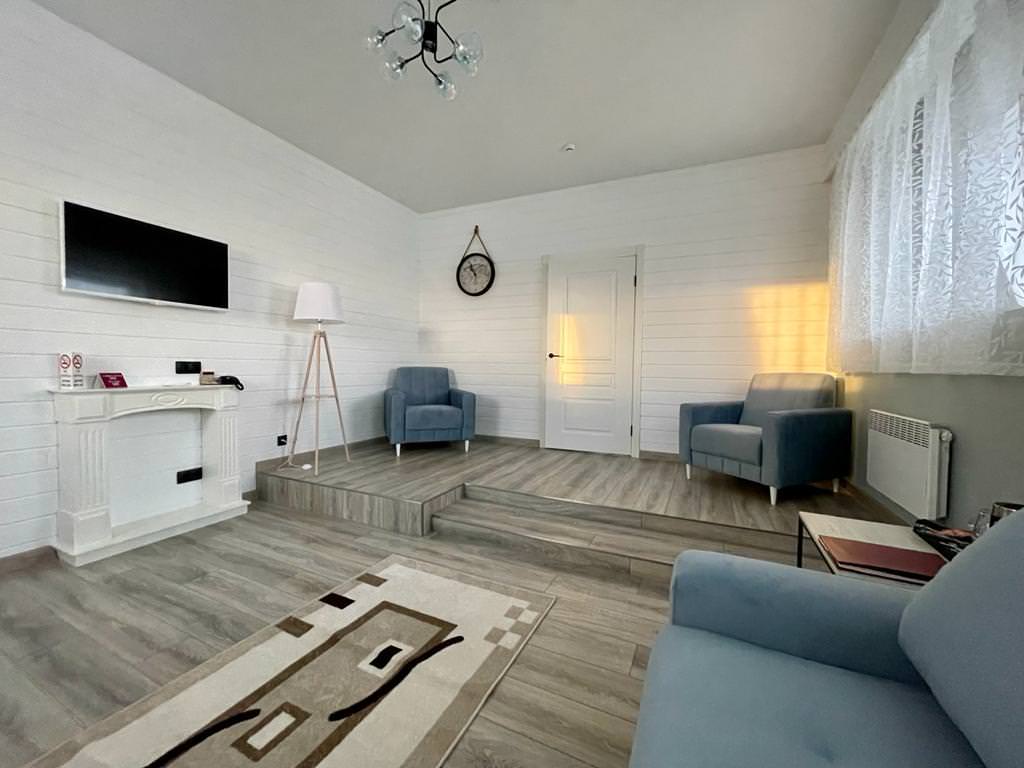 Оснащение номера: одна широкая кровать, в гостиной двуспальный диван, телефон, холодильник, высокоскоростной Интернет (Wi-Fi), телевизор (спутниковое телевидение), кондиционер, индивидуальная система отопления, ванная комната (душ), фен.