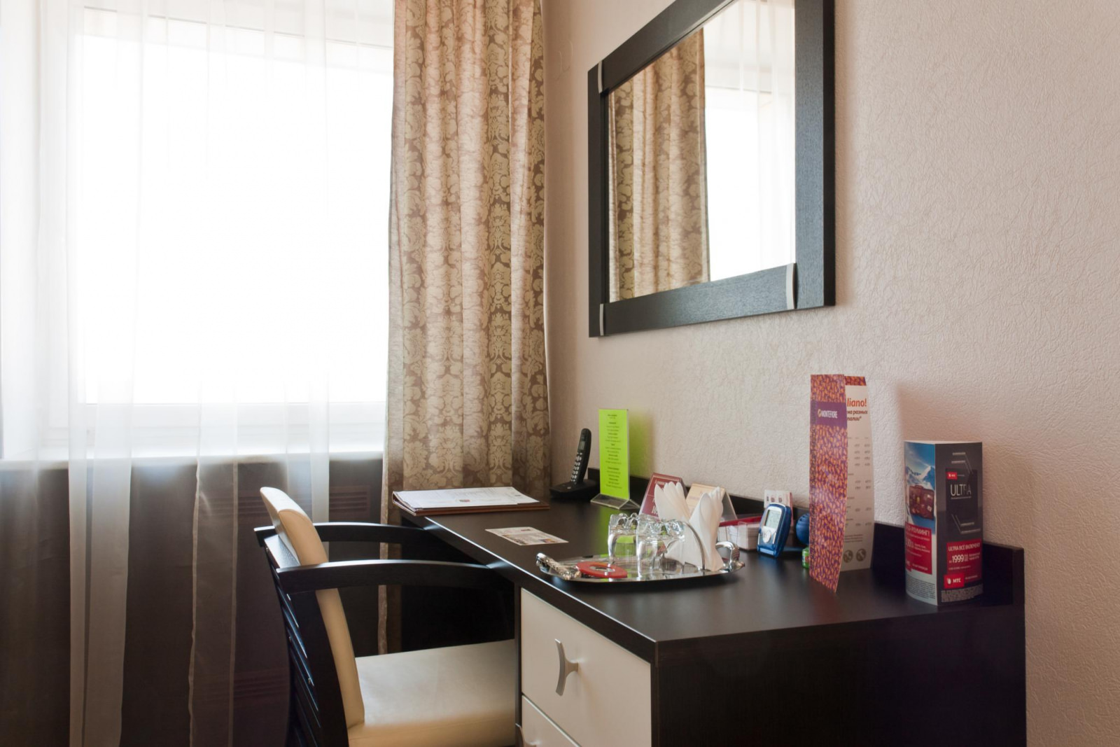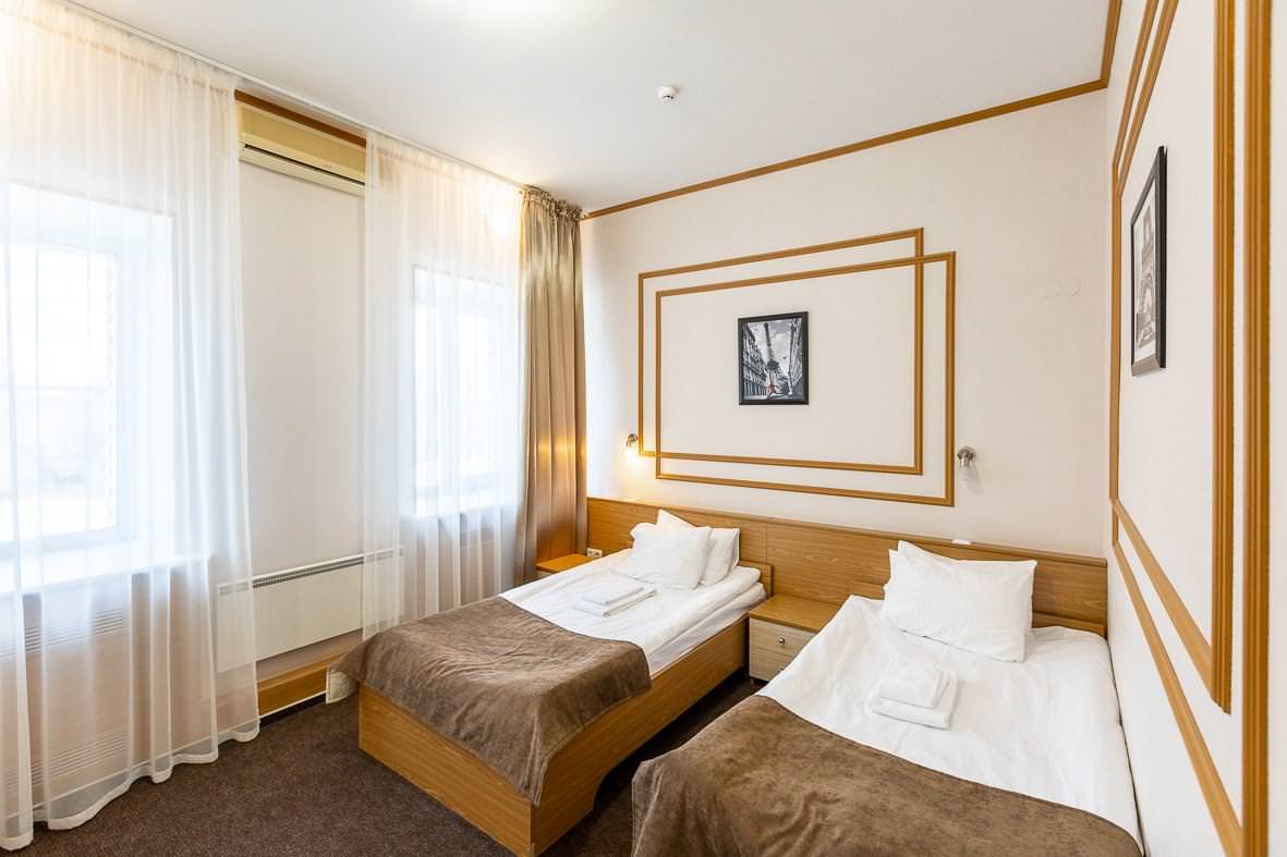 Расположение: 2 этаж, вид на внутренний двор Отеля с охраняемой парковкой. Оснащение номера: две 1.5-спальные кровати/двуспальная кровать, телефон, высокоскоростной Интернет (Wi-Fi), телевизор (спутниковое телевидение), кондиционер, индивидуальная система отопления, ванная комната (душ), фен.
