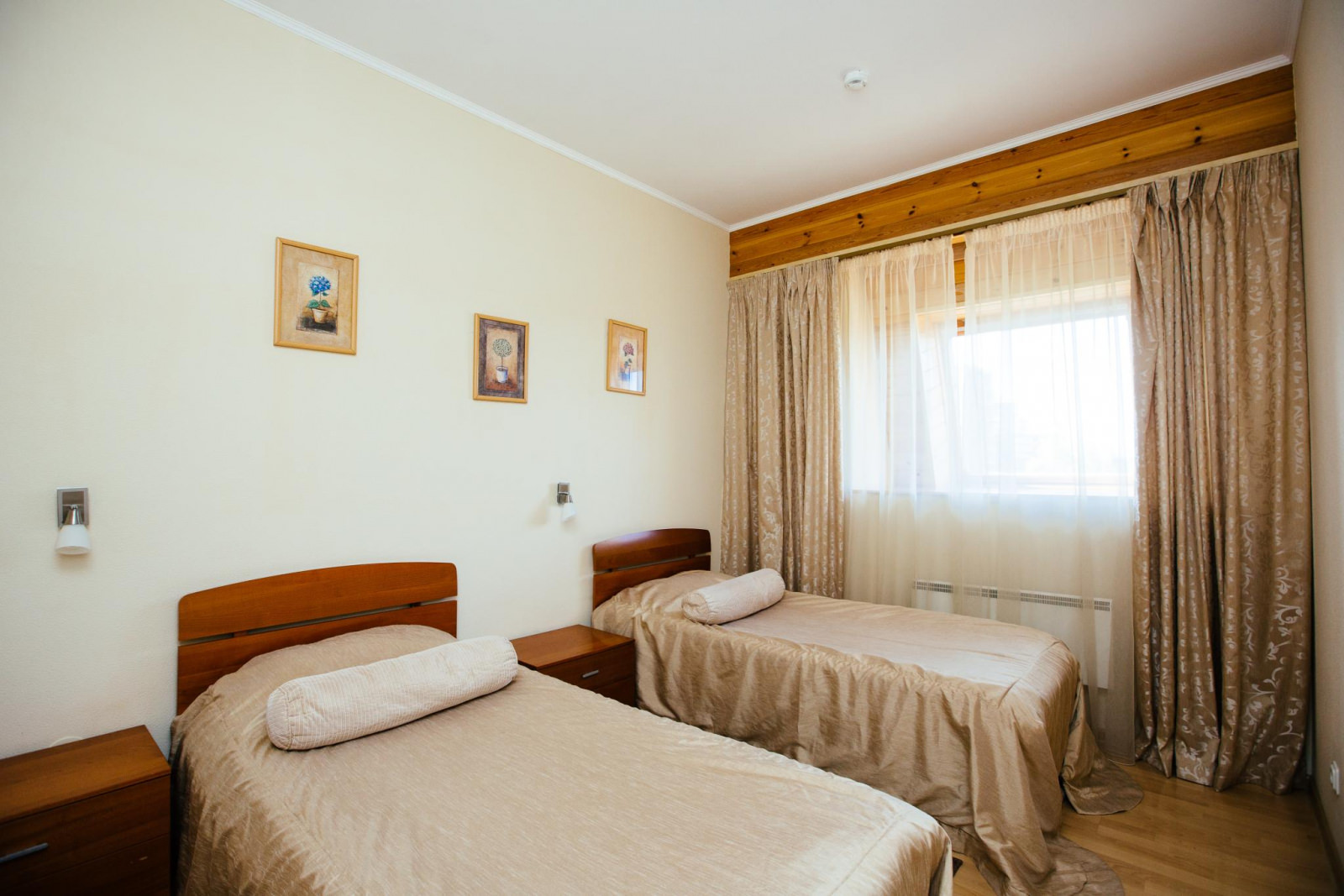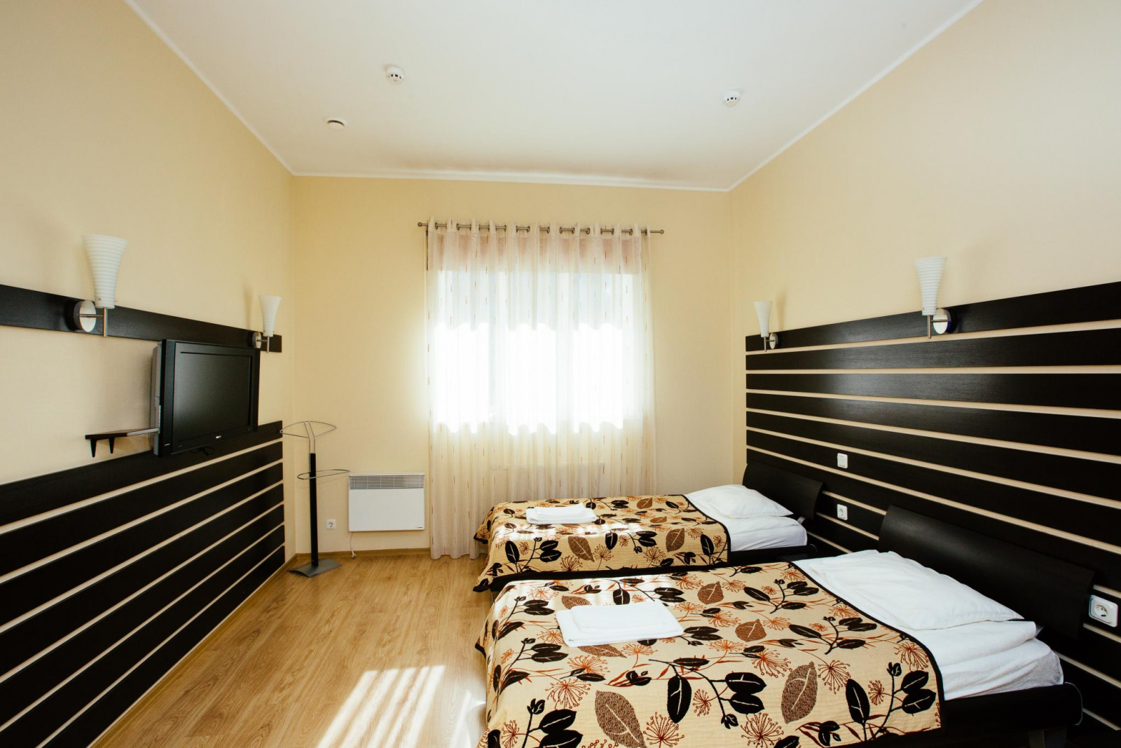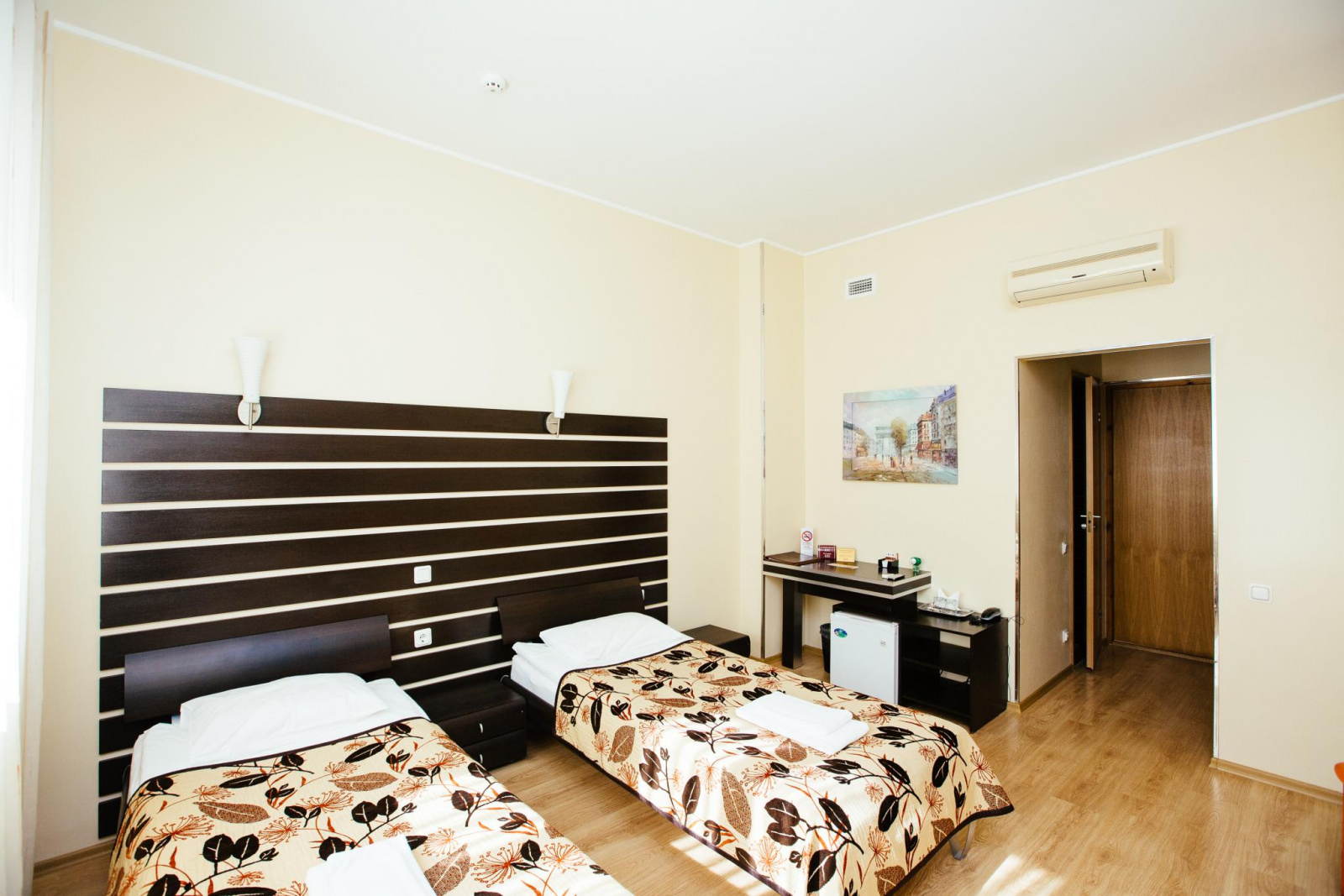 Интерьер номера, выполненный с использованием дерева цвета Венге, придает домашний уют и приятно удивляет неповторимостью дизайна комнат. Оснащение номера: две 1,5-спальные кровати, шкаф-купе, телефон, высокоскоростной Интернет (Wi-Fi), ЖК телевизор (спутниковое телевидение), рабочий стол, кондиционер, мини-бар, индивидуальная система отопления, ванная комната (душ), фен.