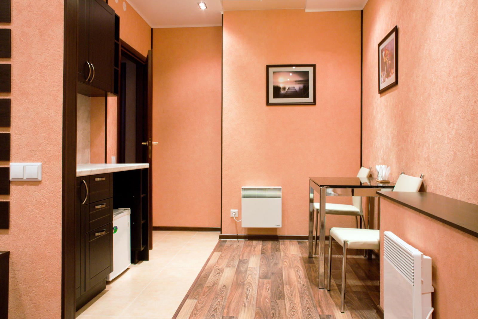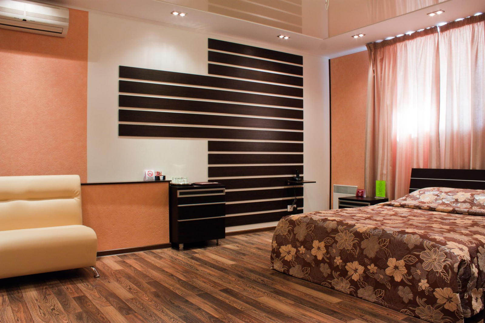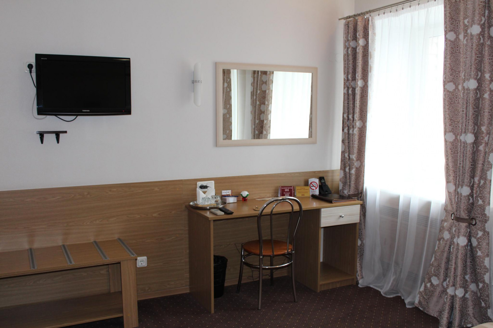 Интерьер номера, выполненный с использованием дерева цвета Венге, придает домашний уют и приятно удивляет неповторимостью дизайна комнат. Оснащение номера: две 1,5-спальные кровати, шкаф-купе, телефон, высокоскоростной Интернет (Wi-Fi), ЖК телевизор (спутниковое телевидение), рабочий стол, кондиционер, мини-бар, индивидуальная система отопления, ванная комната (душ), фен.