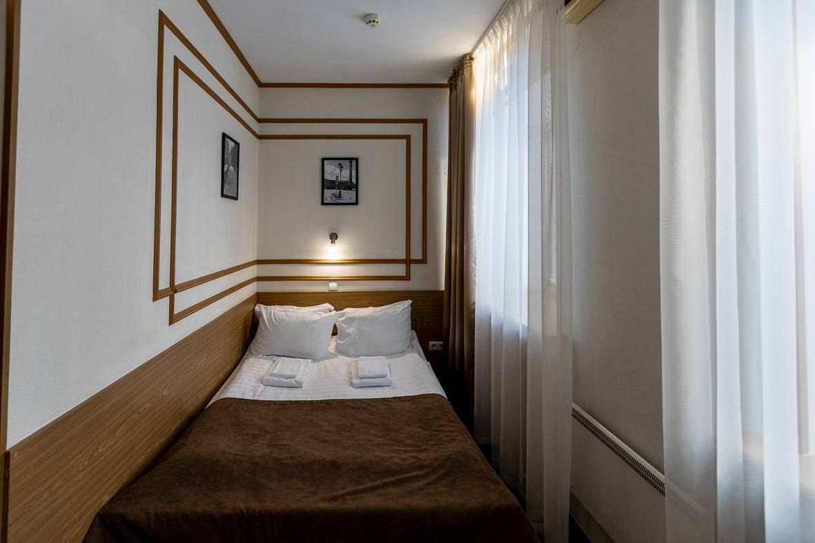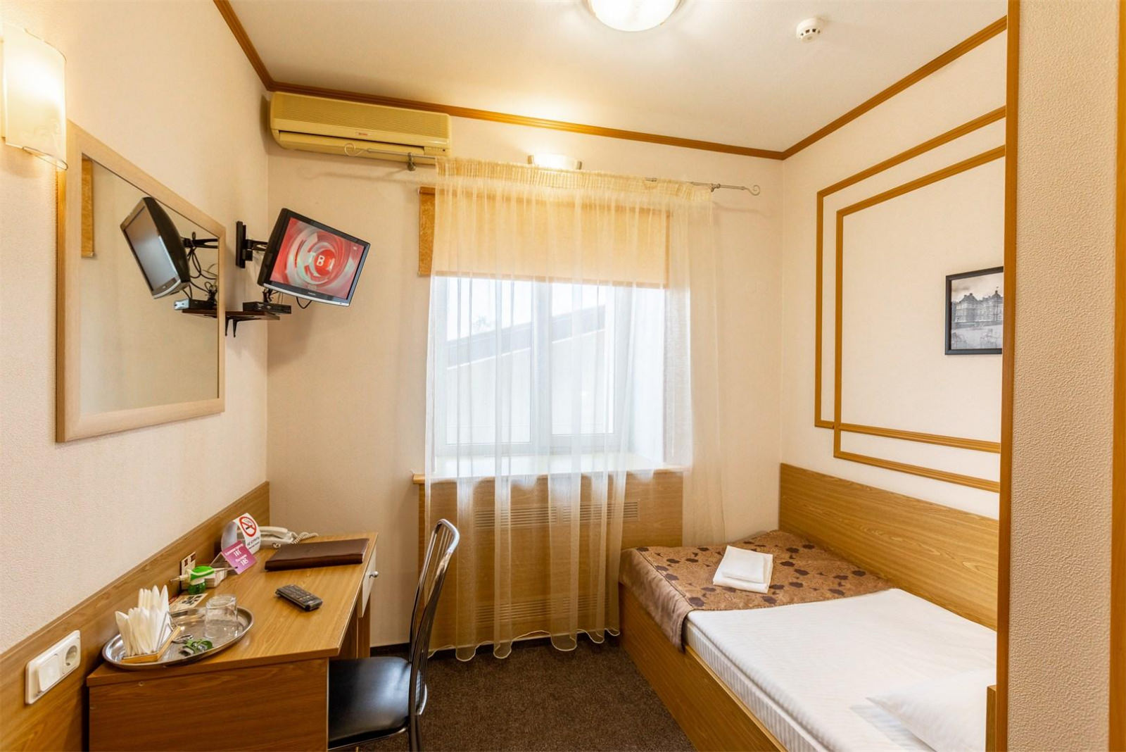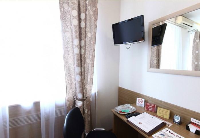 Расположение: 2 этаж, вид во внутренний двор Отеля с фонтаном. Оснащение номера: 1.5-спальная кровать, телефон, высокоскоростной Интернет (Wi-Fi), телевизор (спутниковое телевидение), кондиционер, индивидуальная система отопления, ванная комната (душ), фен.