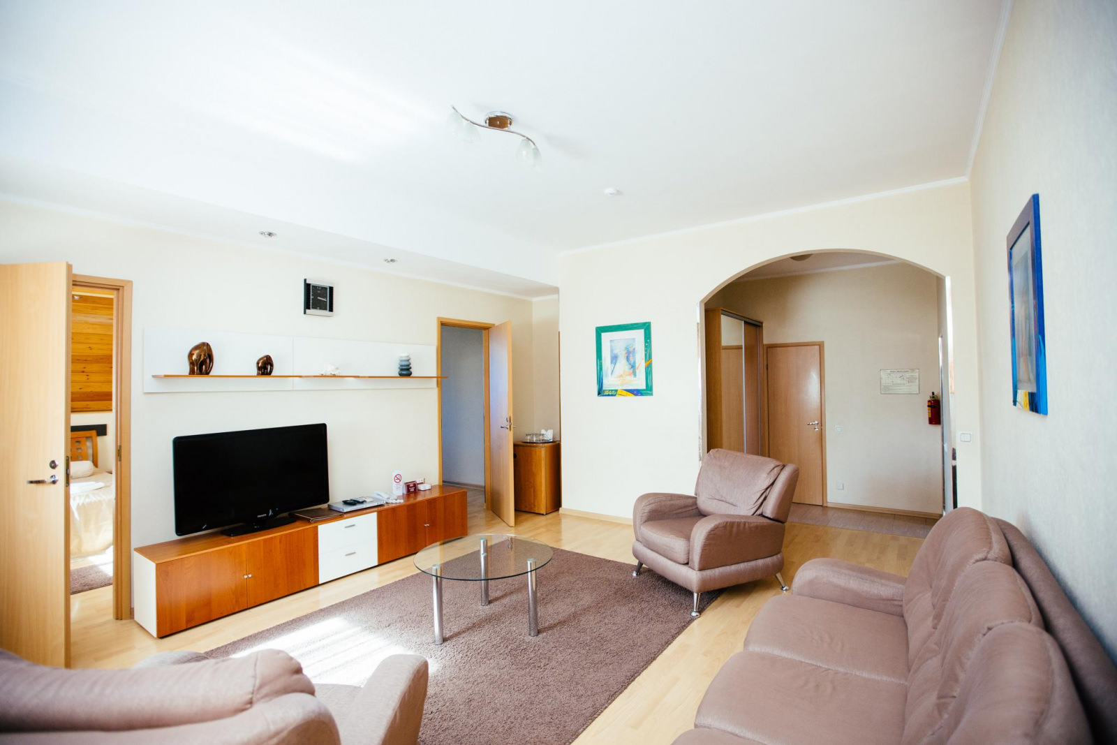 Оснащение номера: двуспальная кровать «Queen Size», две 1,5-спальные кровати, в гостиной двуспальный диван, телефон, холодильник, DVD, высокоскоростной Интернет (Wi-Fi), телевизор (спутниковое телевидение), кондиционер, индивидуальная система отопления, ванная комната (ванна, душ), фен.