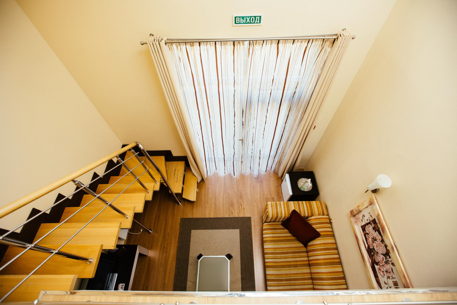 Интерьер номера, выполненный с использованием дерева цвета Венге, неповторим уникальностью дизайна комнат, из которых открывается прекрасный вид на озеро. Номер с отдельным выходом во внутренний двор Отеля с фонтаном и спуском к собственной набережной с пляжем. Первый этаж: гостиная‚ шкаф-купе, раскладывающийся диван, ЖК телевизор, телефон, высокоскоростной Интернет (Wi-Fi), кондиционер, холодильник, индивидуальная система отопления, ванная комната (душ), фен. Второй этаж: спальня‚ две 1,5 спальные кровати или 1 широкая кровать, ЖК телевизор (спутниковое телевидение), зеркало.
