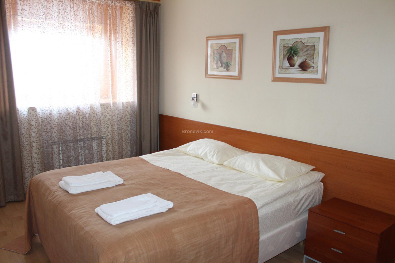 Номер расположен на втором этаже Отеля. Оснащение номера: двуспальная кровать, телефон, высокоскоростной Интернет (Wi-Fi), телевизор, кондиционер, индивидуальная система отопления, ванная комната (душ), фен.