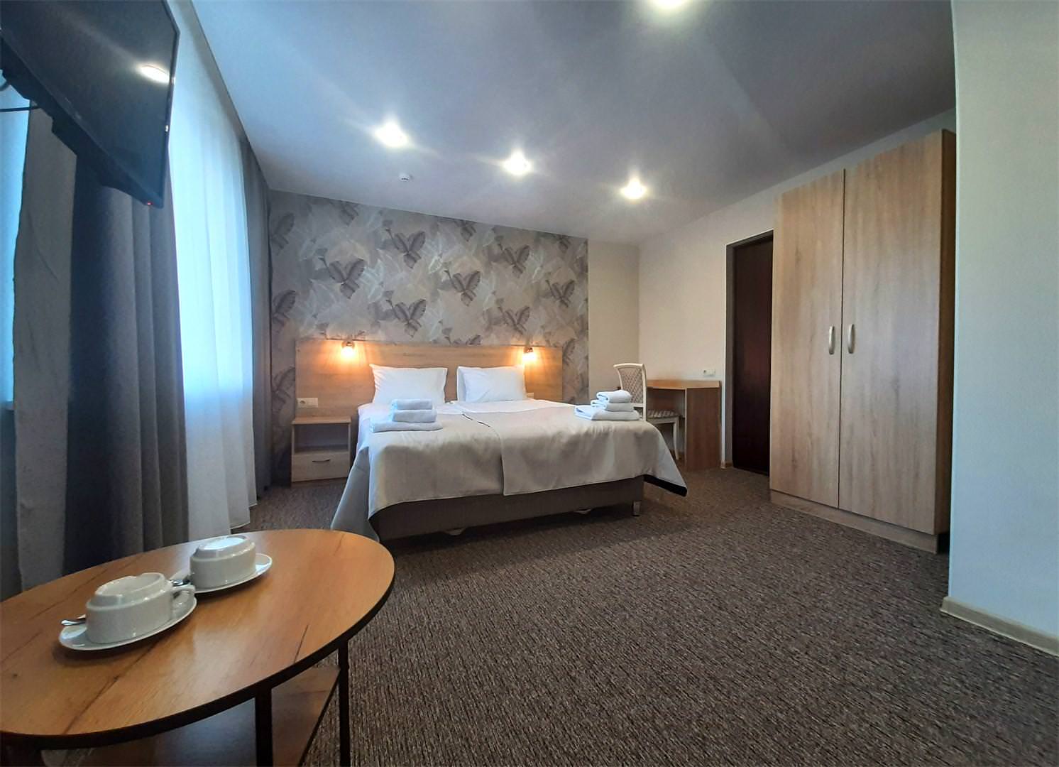 Самолетом до аэропорта г. Минеральные Воды, далее 209 м «Автостанция Аэропорт Минеральные Воды», далее на маршрутном такси №4634 до остановки «Улица Гоголя», далее 540 м до отеля.