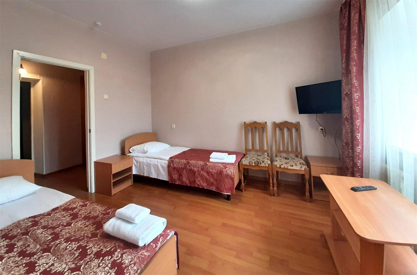 Поездом до ж/д вокзалаг. Ессентуки, далее на маршрутном такси №21 до остановки «Поликлиника», далее 236 м до отеля.