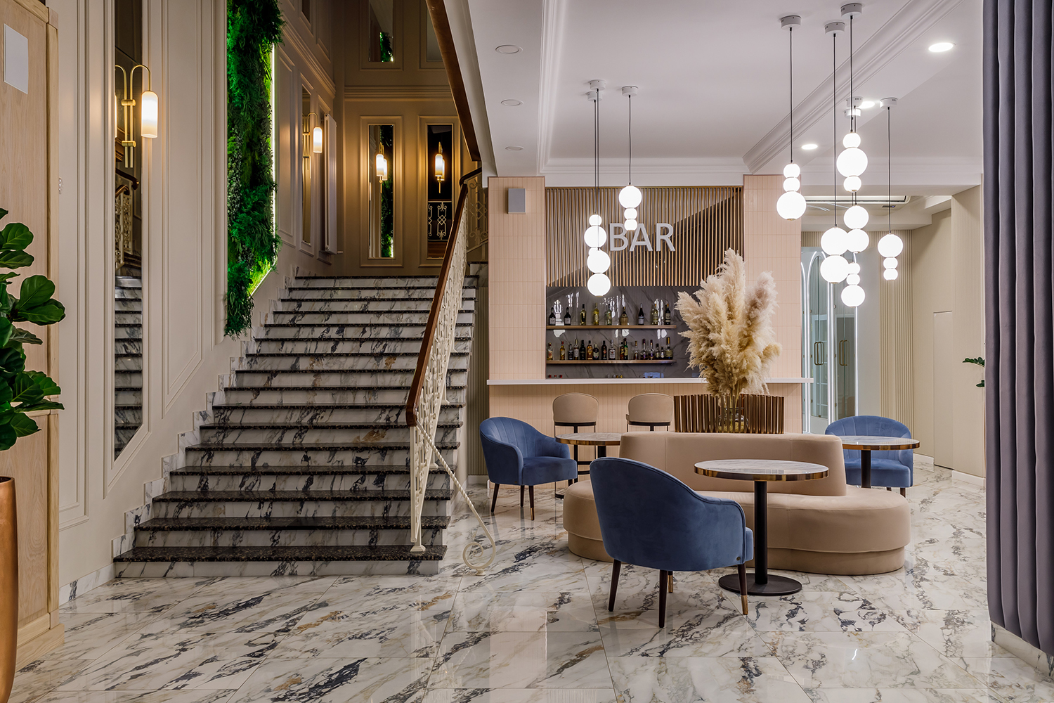 Роскошный номерной фонд, стильные интерьеры, изысканное меню от шеф-повара и SPA-ритуалы, в которых используются средства французской космецефтики Anne Semonin, позволят вам не только поправить здоровье, но и получить эстетическое удовольствие от пребывания в санатории.