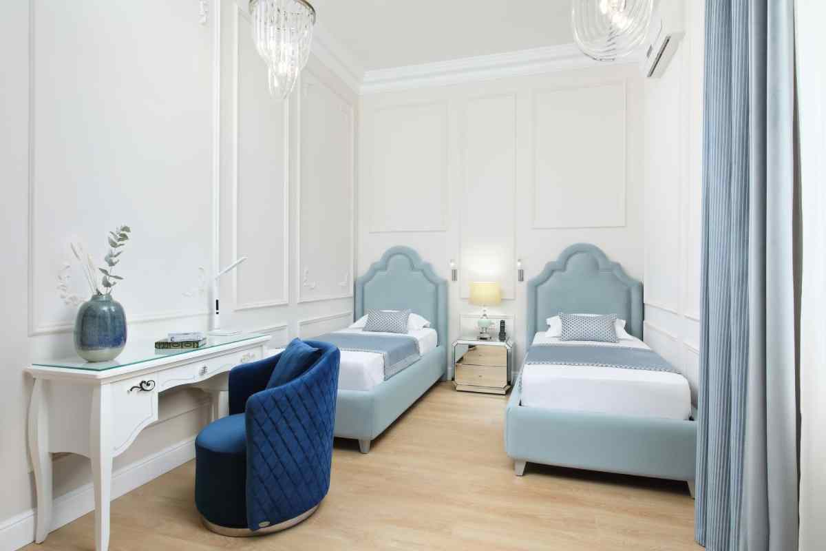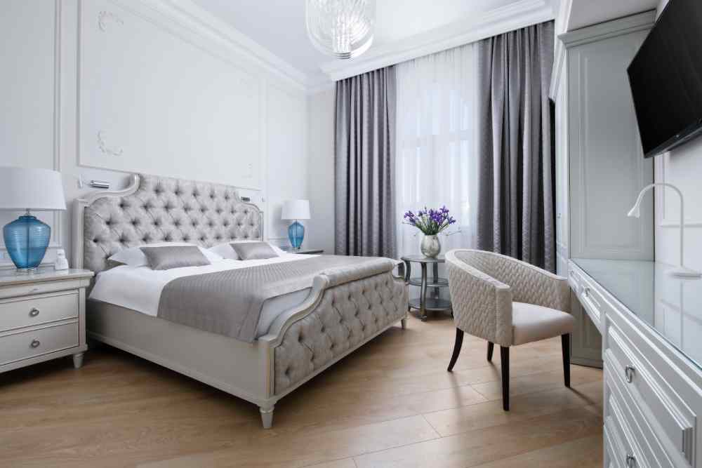 Трёхкомнатный номер Grand suite с двумя спальнями и просторной гостиной. В одной спальне большая двуспальная кровать, во второй две полутороспальные кровати. Номер оборудован двумя ванными комнатами и гардеробными.
