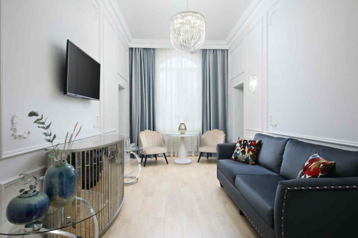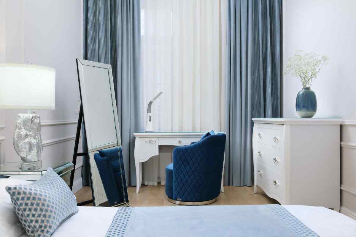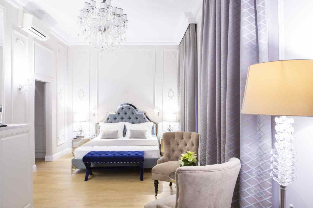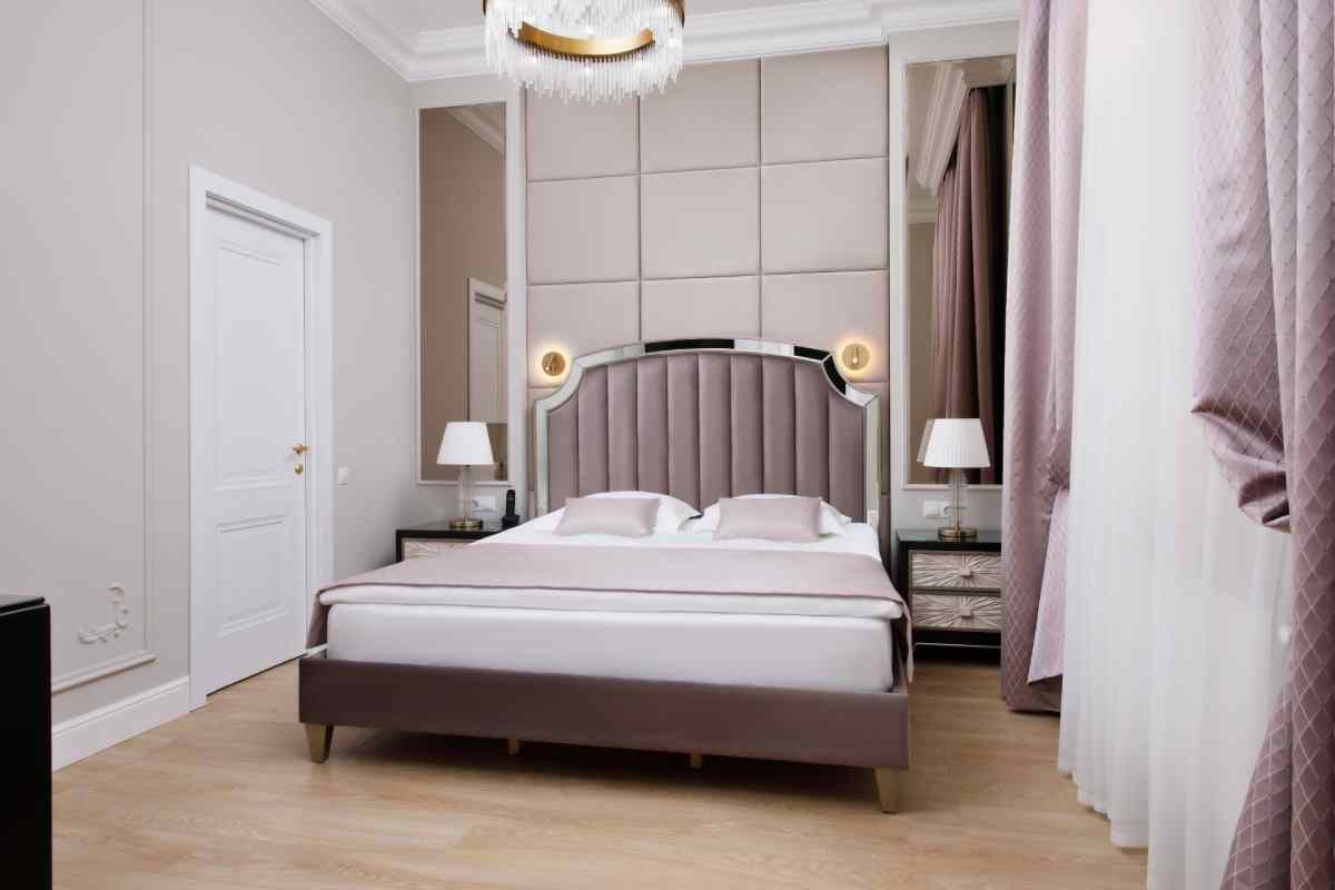 Изысканный и просторный двухкомнатный номер с большой двуспальной кроватью, гостиной, просторной ванной комнатой и гардеробной.