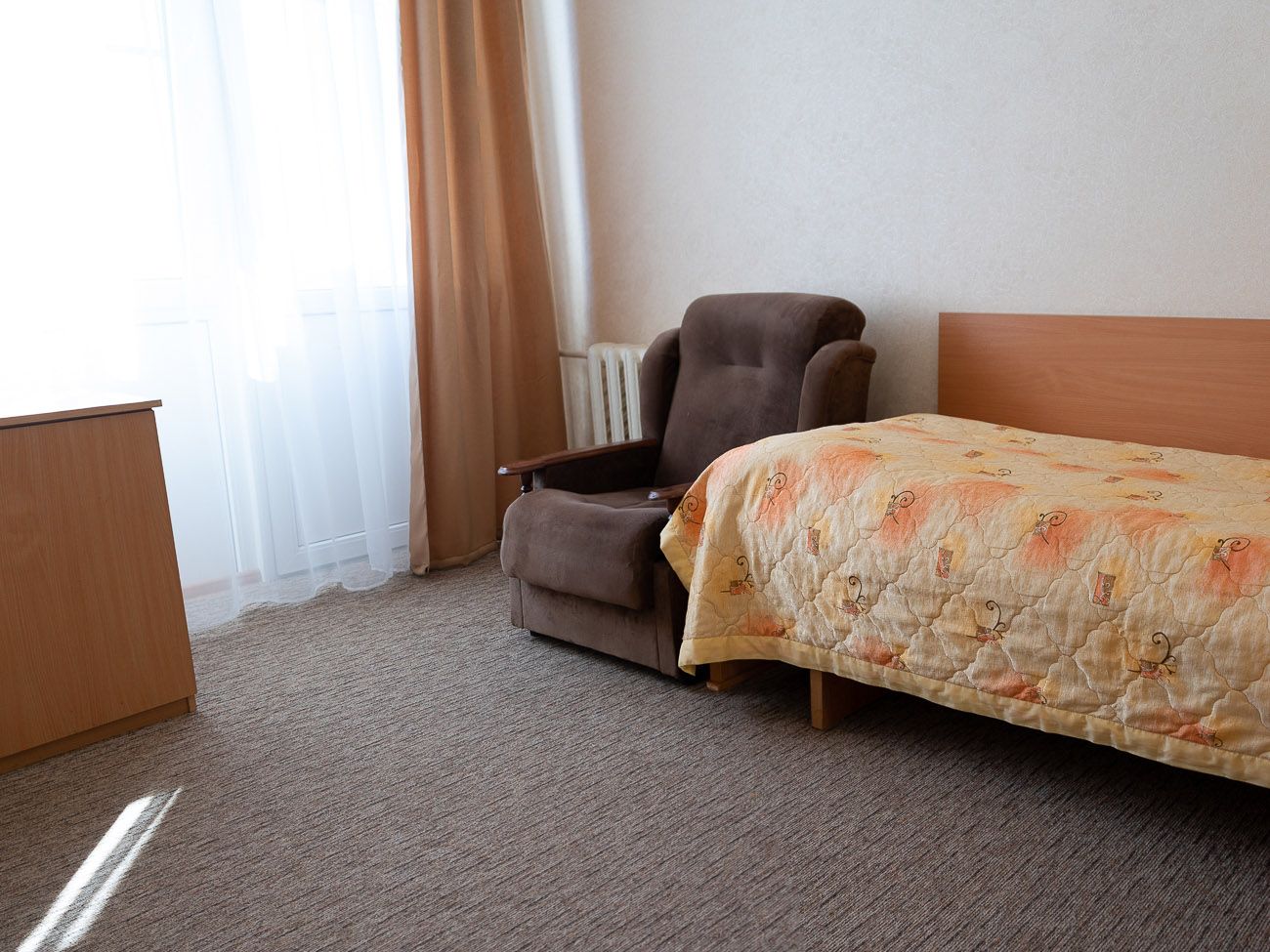 Для размещения гостей в пансионате есть четыре жилых корпуса и они рассчитаны на 1470 мест. Корпус №1 - это семиэтажное здание с лифтом. Здесь есть номера различной категории. В корпусе имеется бар, почта, процедурный кабинет, который открыт двадцать четыре часа в сутки. Корпус №2 - это семиэтажное здание с лифтом.
