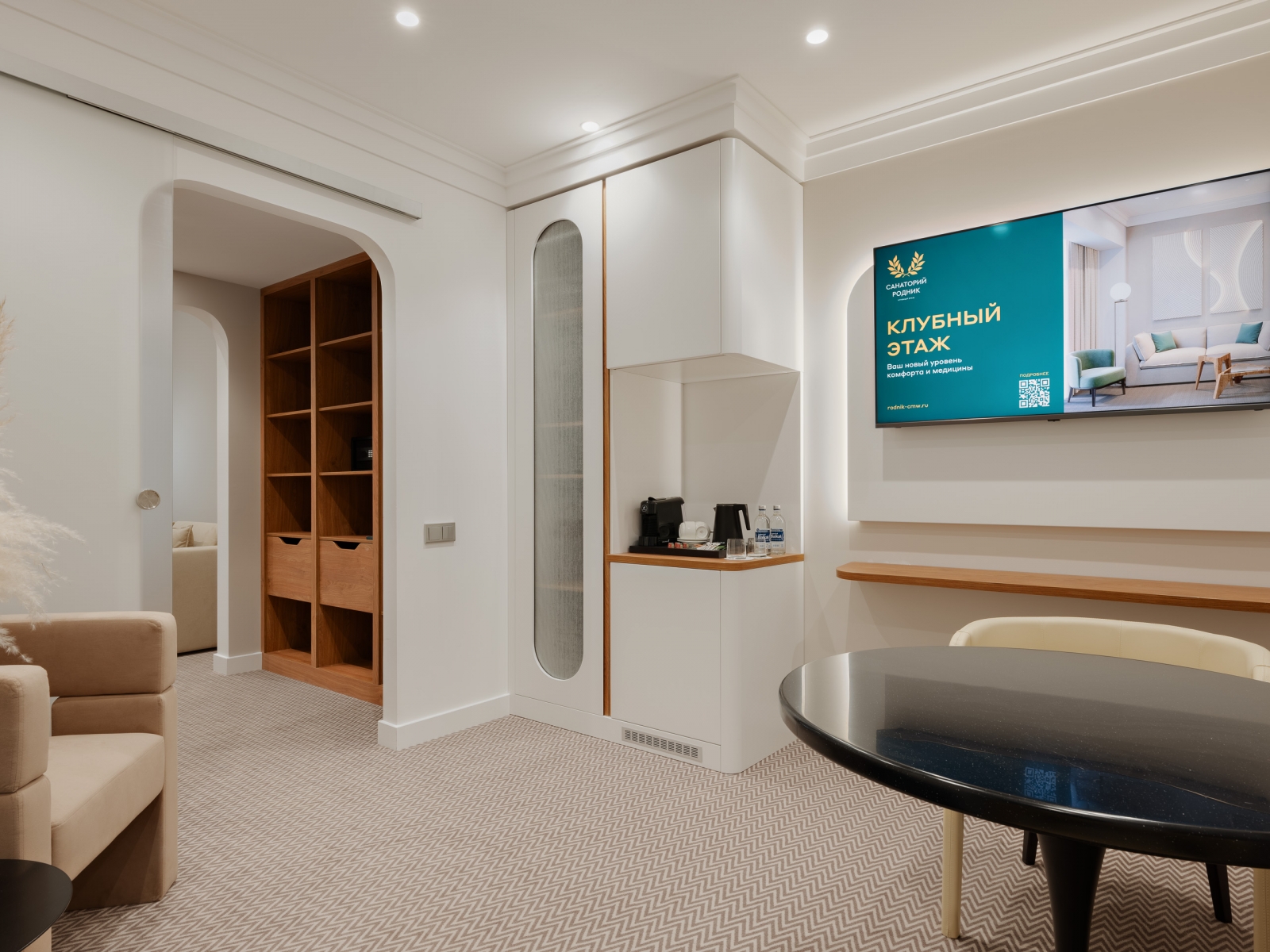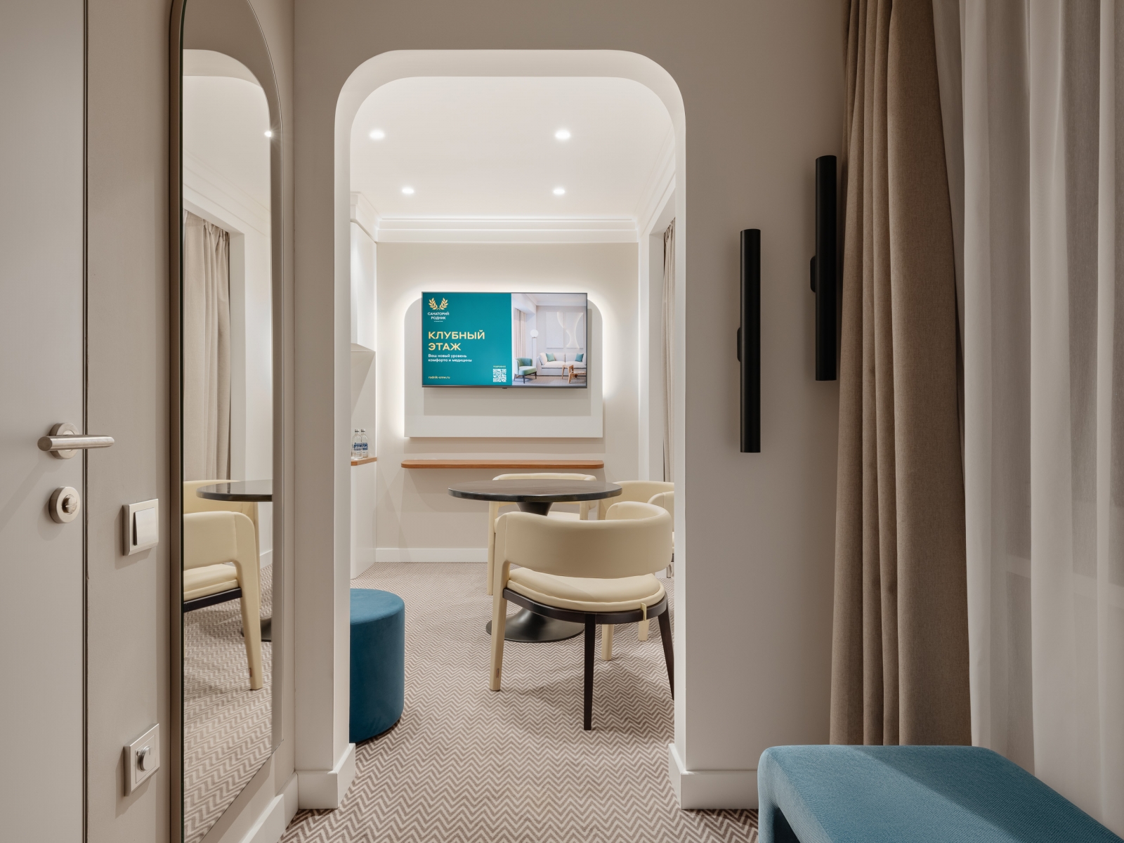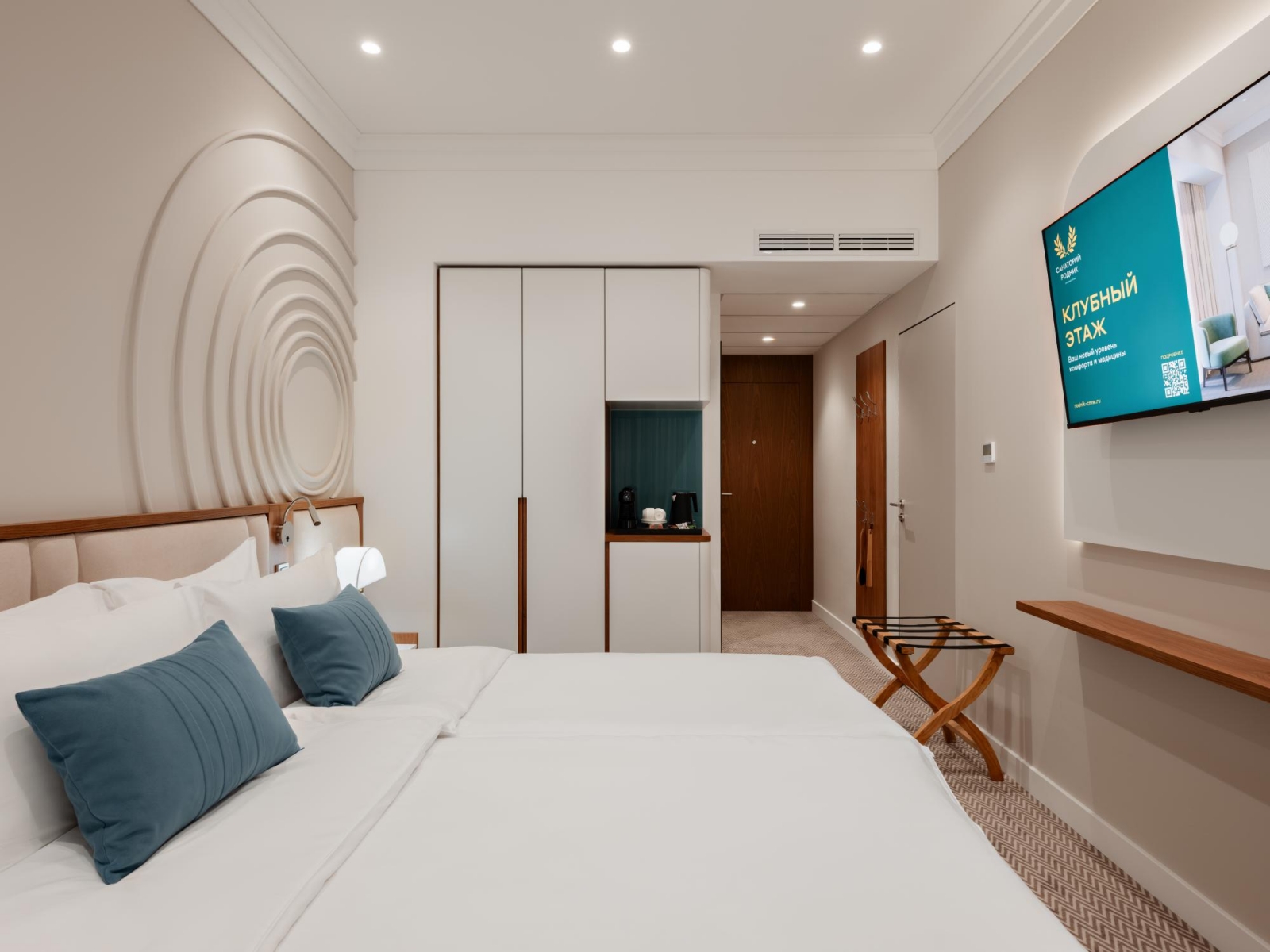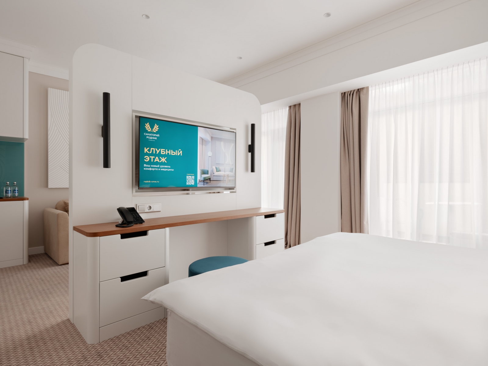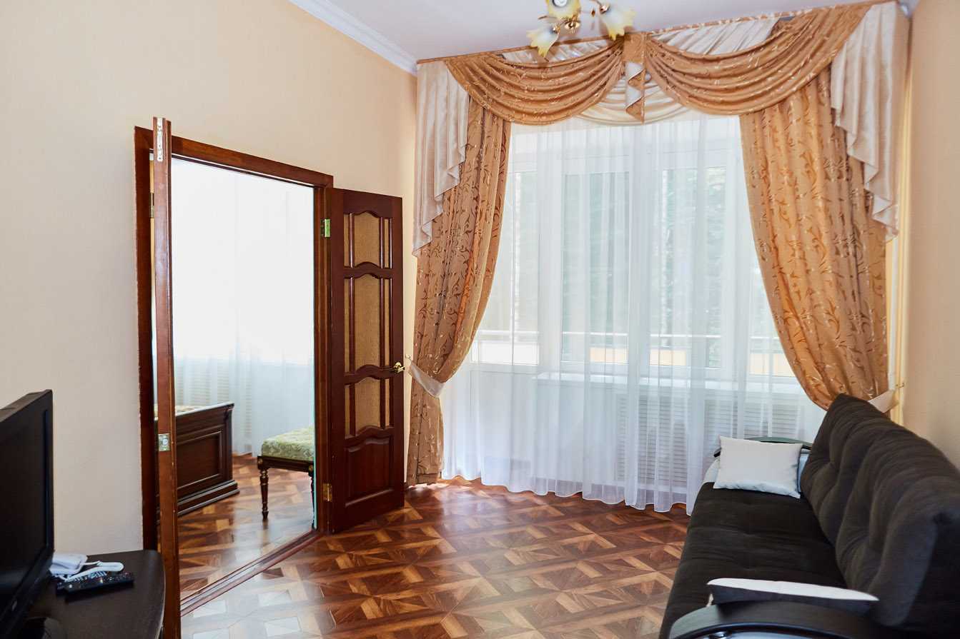 Одноместные и двухместные номера «Стандарт», а также 2-х и 3-комнатные номера класса «Люкс» оснащены всем необходимым для приятного отдыха после лечебных процедур — удобной мебелью, холодильниками, сейфами и телевизорами.
