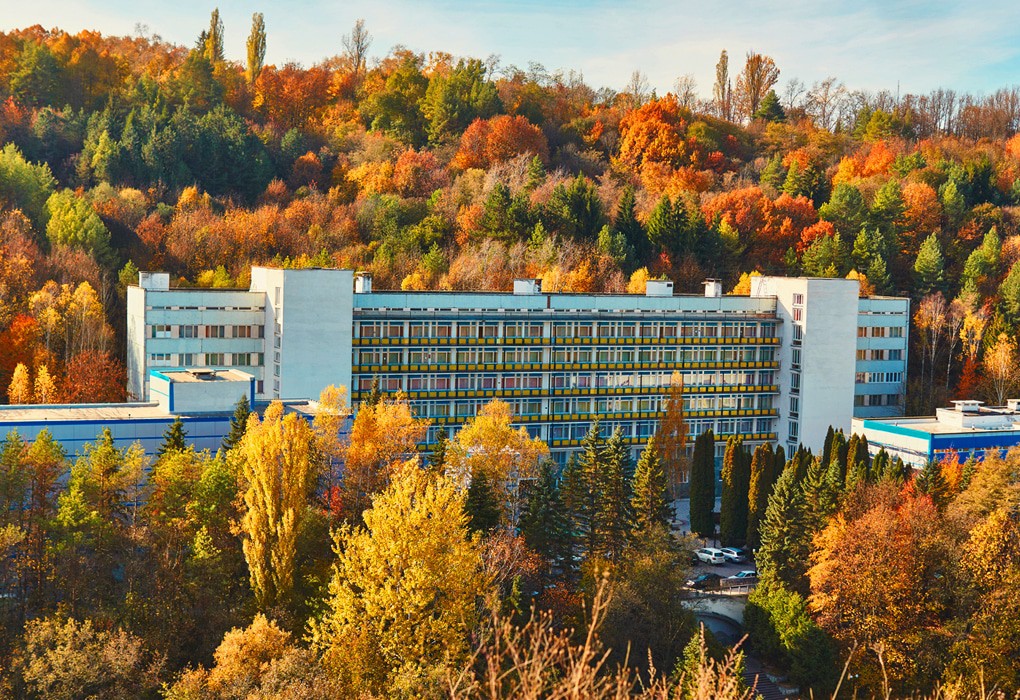Санаторий расположен в городе Кисловодск, не только имеет на своей территории бювет с подачей 3-х минеральных вод: Ессентуки-4, Нарзан, Славяновская, но и предлагает для гостей различные процедуры с применением минеральной воды.