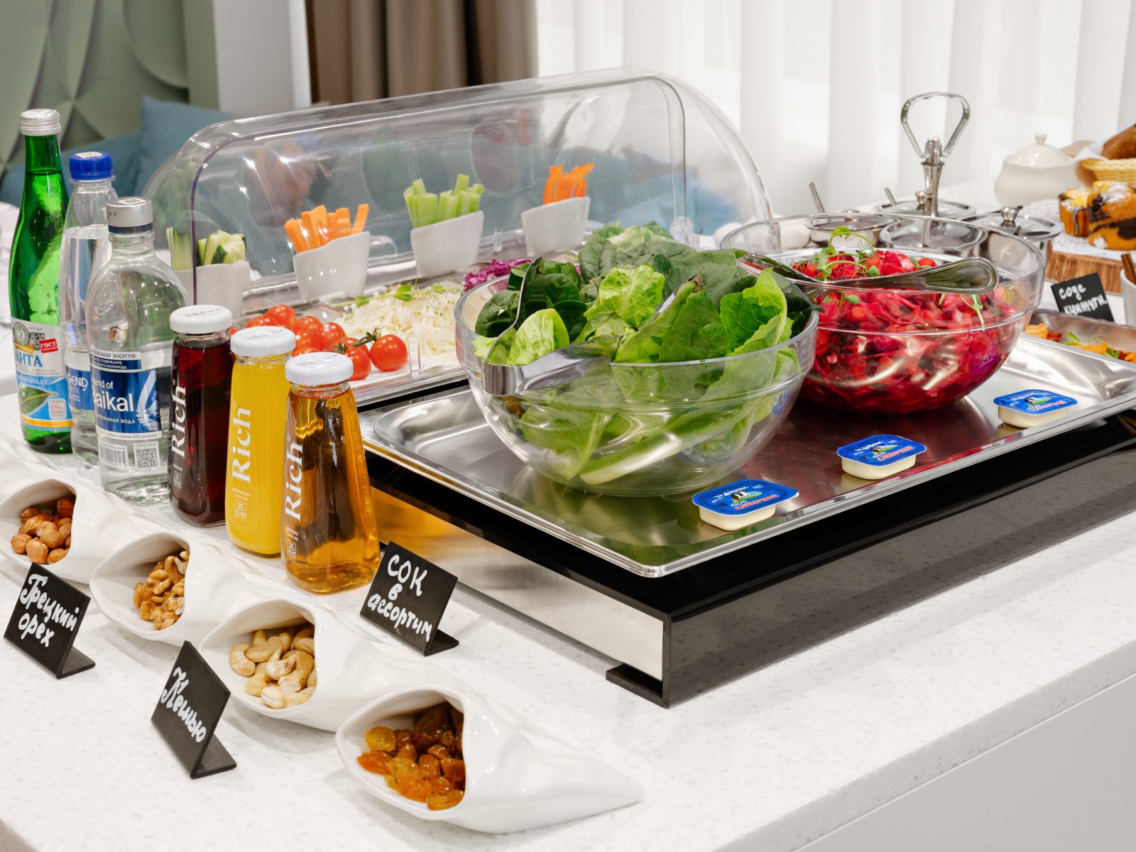 Правильное и сбалансированное питание — важный фактор в санаторно-курортном лечении и оздоровлении. В нашем санатории завтраки, обеды и ужины проходят в формате «шведского стола», в меню которого можно также найти блюда национальной кухни.