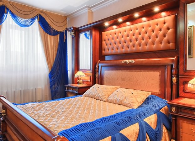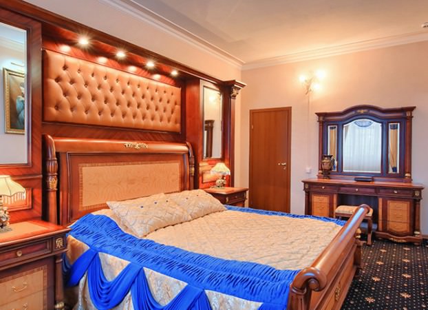 Мебель в номере изготовлена из массива дерева зарубежного производства и прекрасно сочетается с общим интерьером. Дизайн каждой комнаты выполнен в индивидуальной цветовой гамме, а пространство наполнено различными арт-объектами.