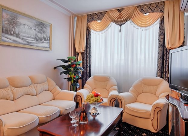 Роскошный номер состоящий из спальной, гостиной комнаты, ванной и прихожей.