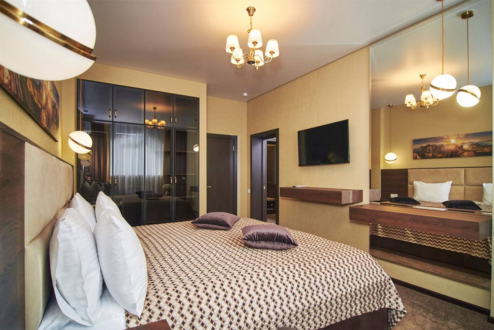 Домашний интерьер номера способствует полной релаксации, а мягкая постель обеспечит крепкий здоровый сон.