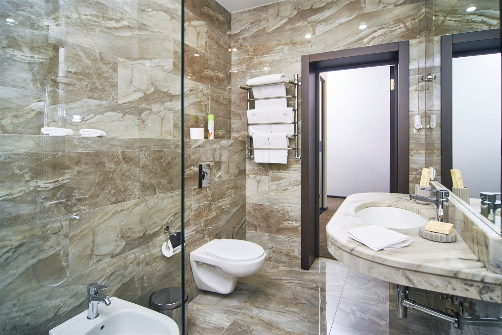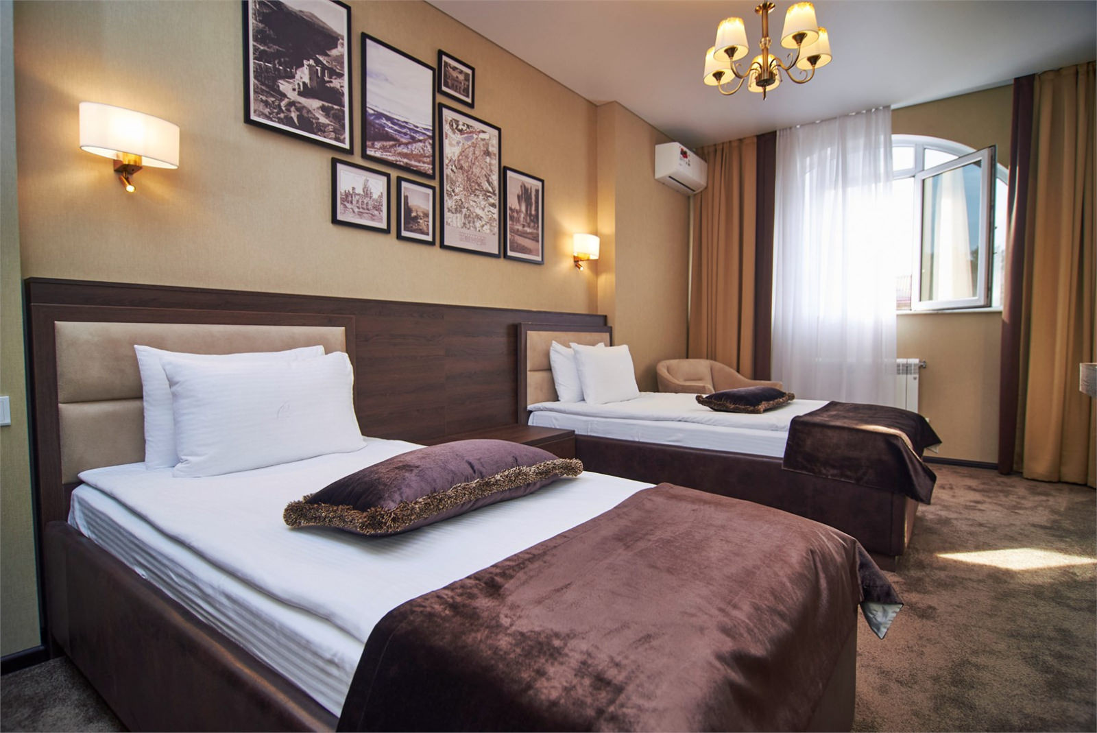 В номерах данной категории гости могут выбрать две односпальные либо одну двуспальную кровать. Санузел оборудован ванной с душем, там же для постояльцев приготовлены халаты, тапочки, набор полотенец и гигиенические средства.