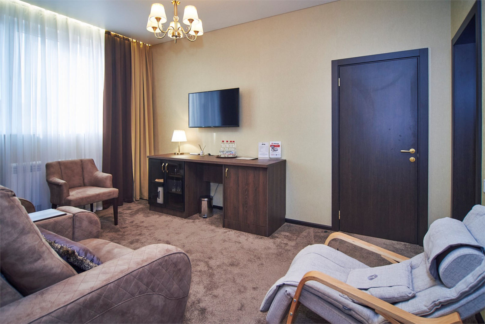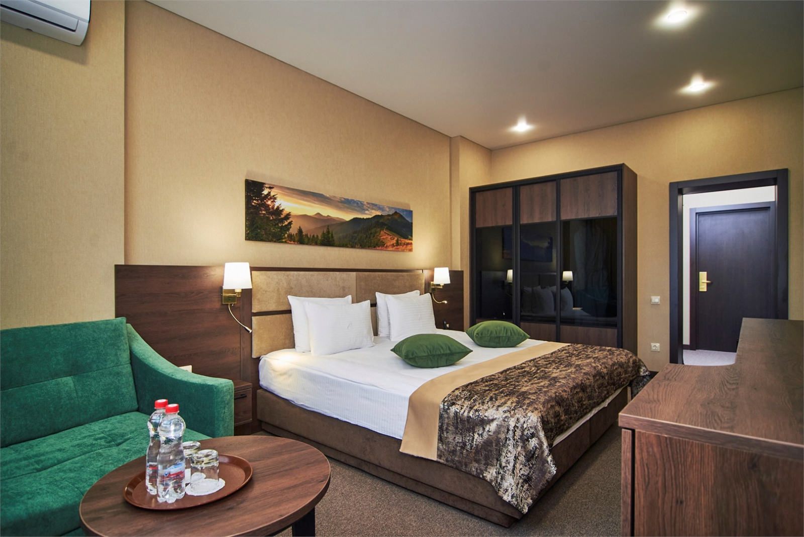 Номер улучшенной планировки отлично подойдет для семейного отдыха с детьми. Просторный и комфортный номер оборудован всем необходимым для размеренного пребывания в санатории. Компактный и удобный диван рассчитан для дополнительного места.