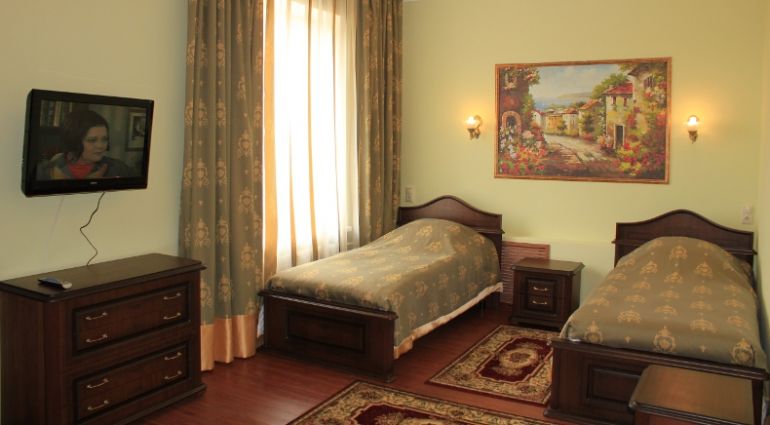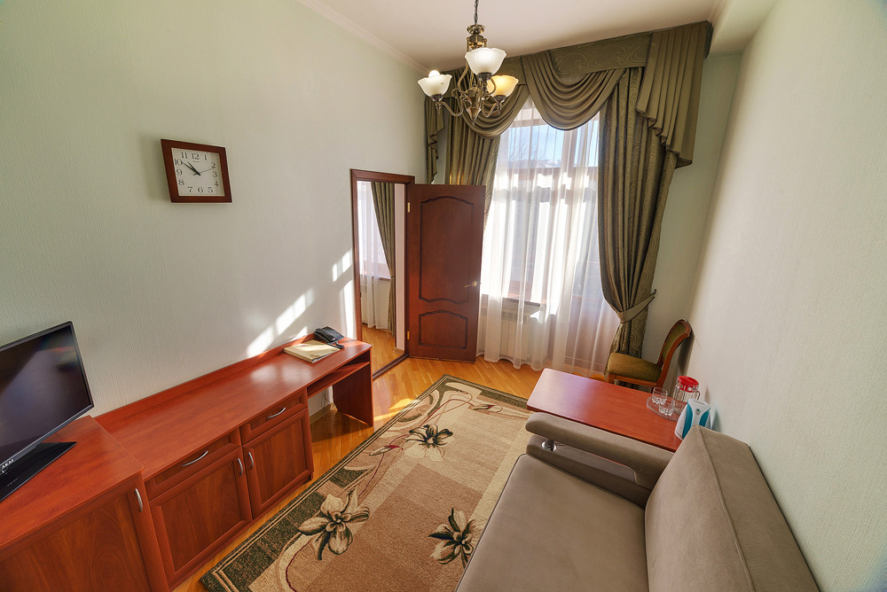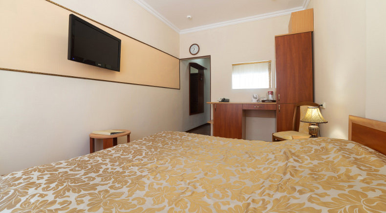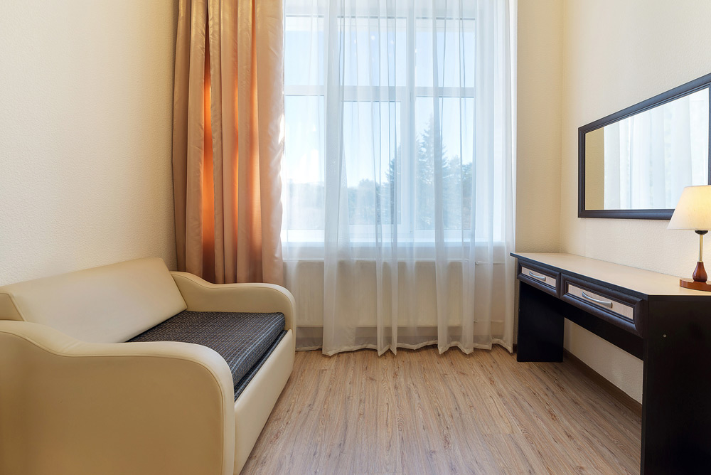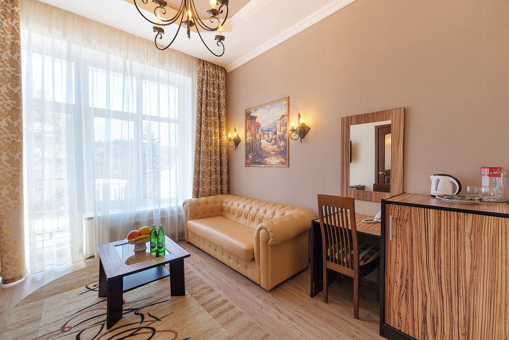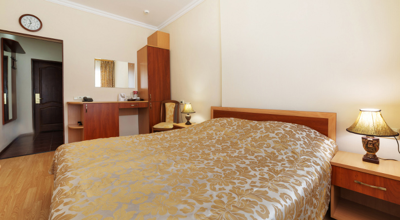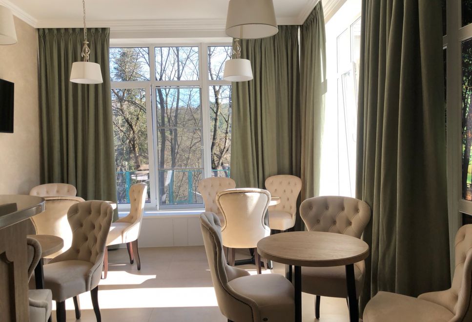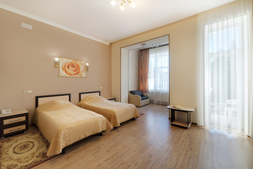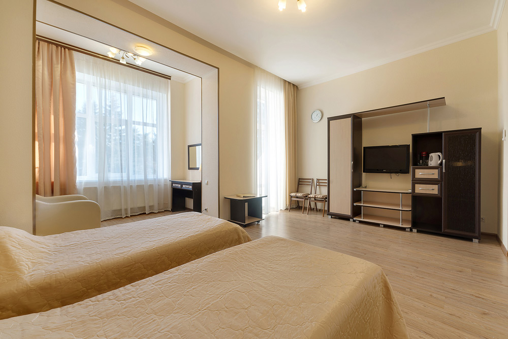К услугам гостей 250 номеров различных категорий. Wi-Fi на всей территории санатория. Питание по системе «шведский стол». Услуги лобби-бара.