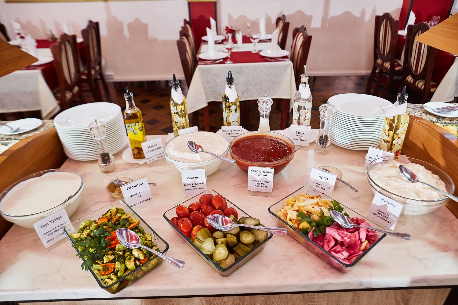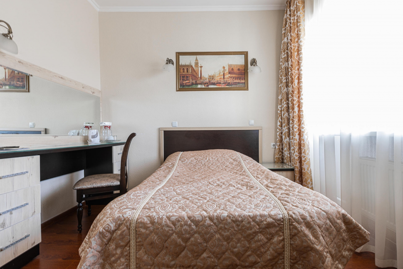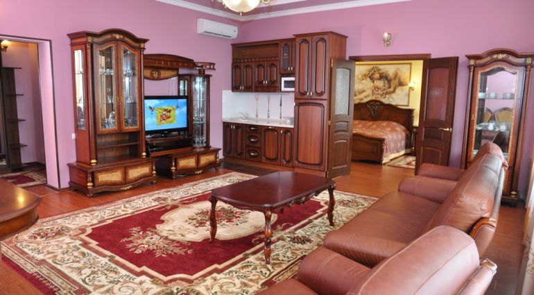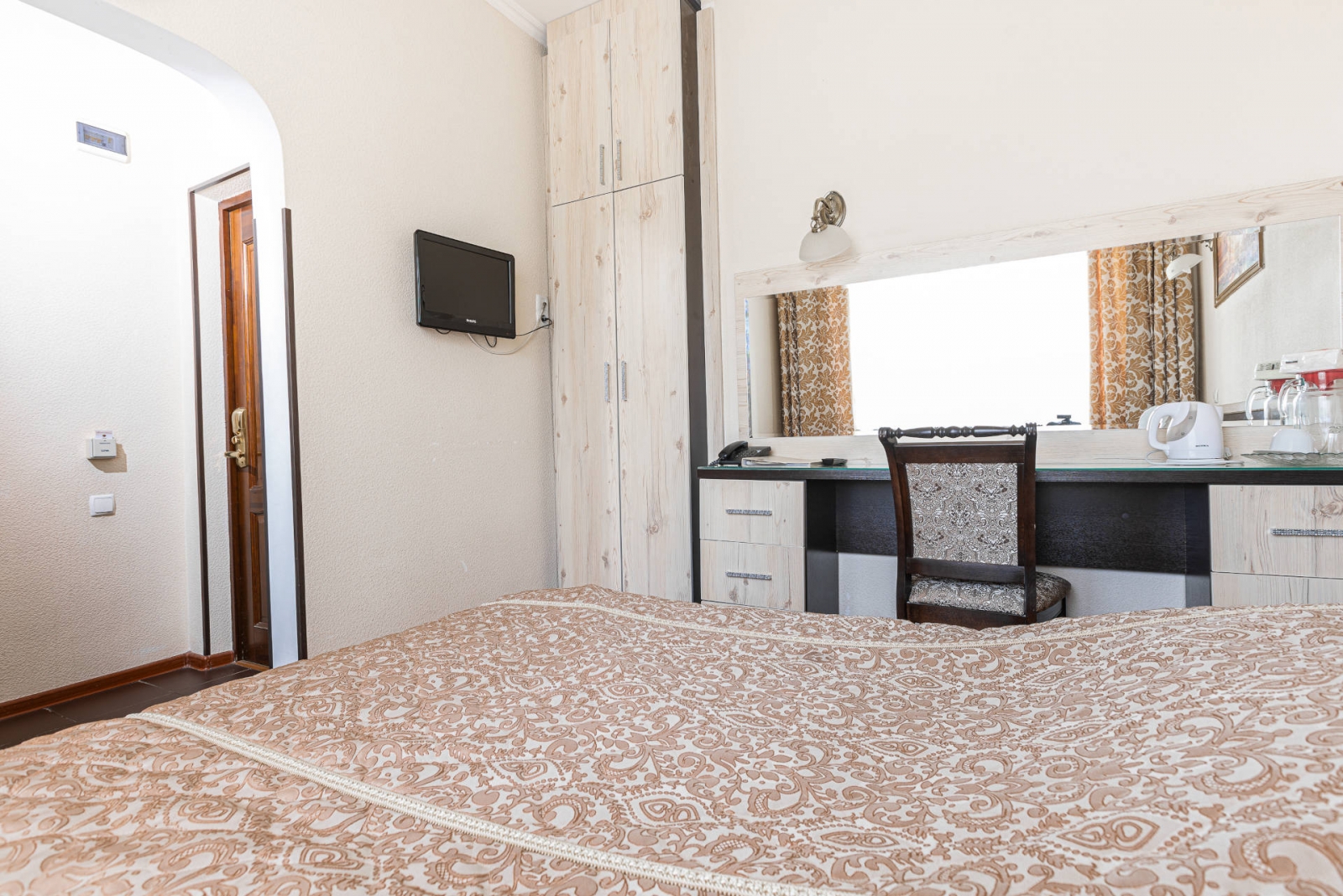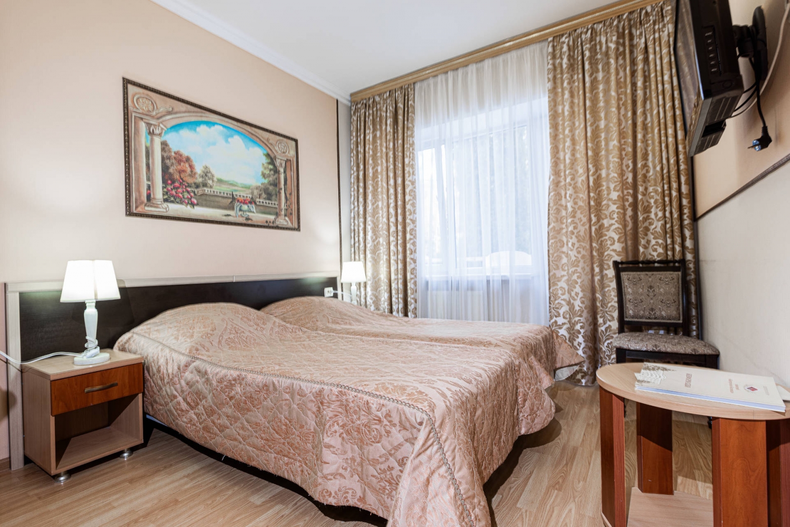 К услугам гостей 250 номеров различных категорий. Wi-Fi на всей территории санатория. Питание по системе «шведский стол». Услуги лобби-бара.