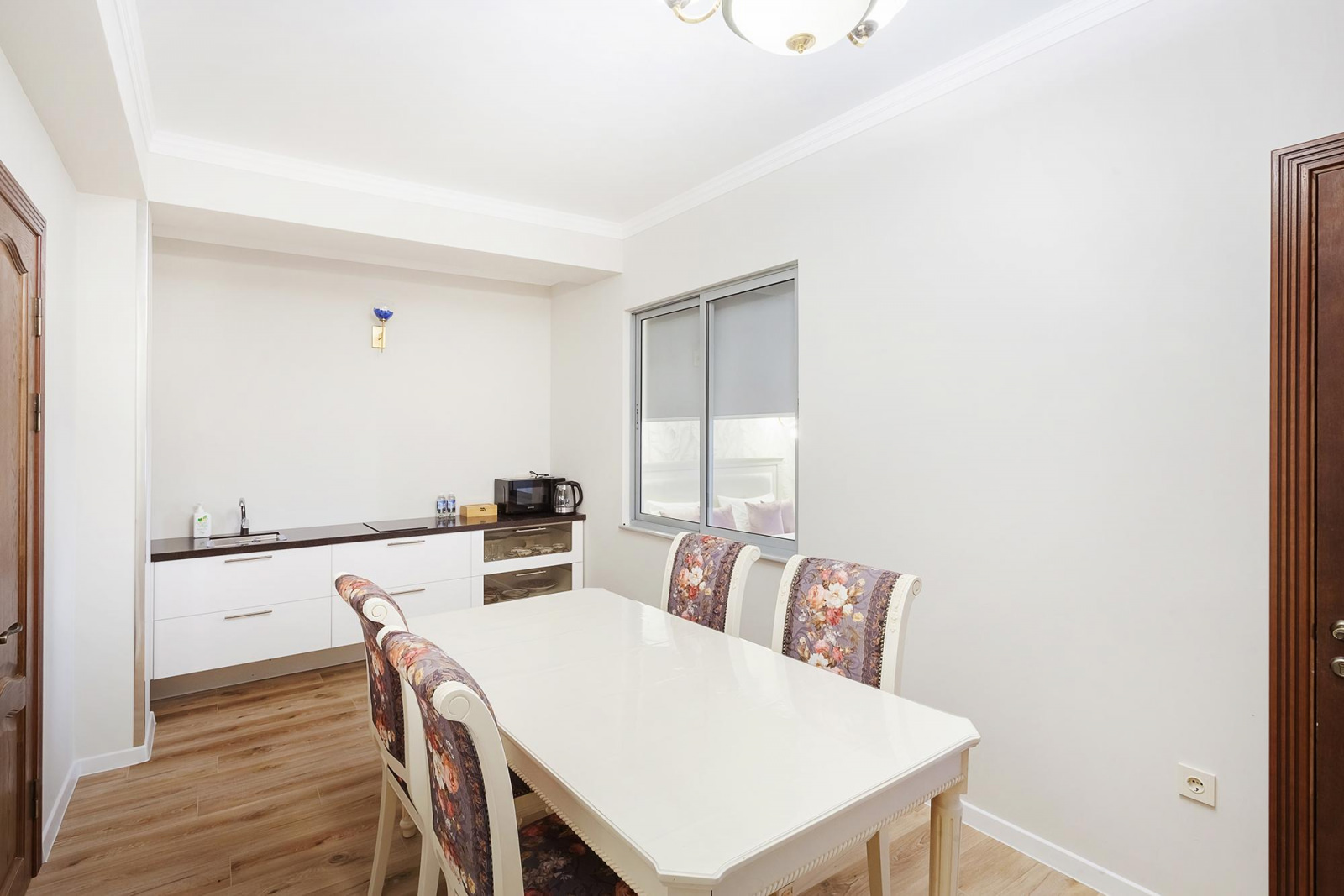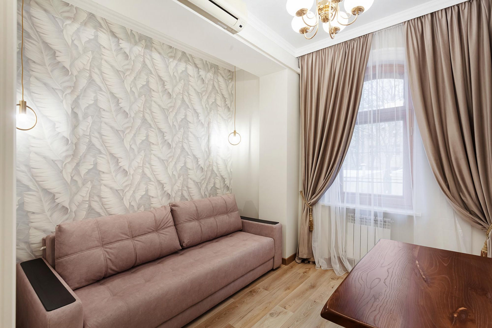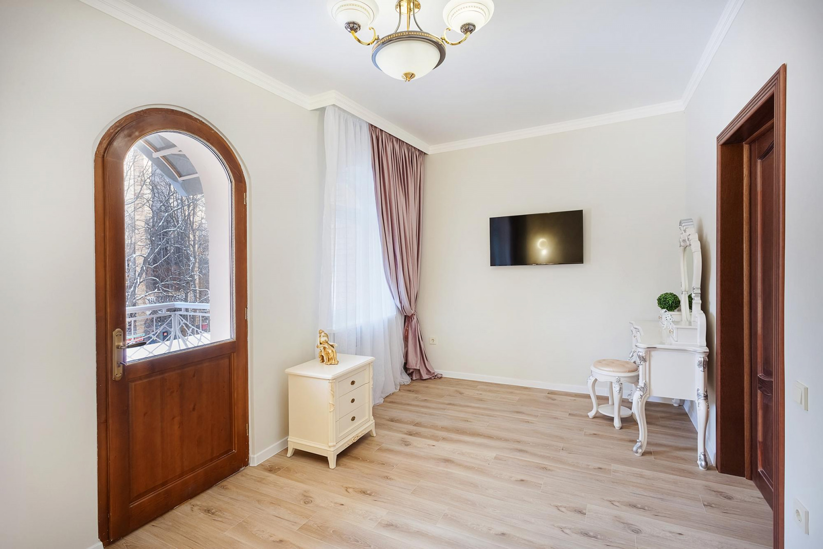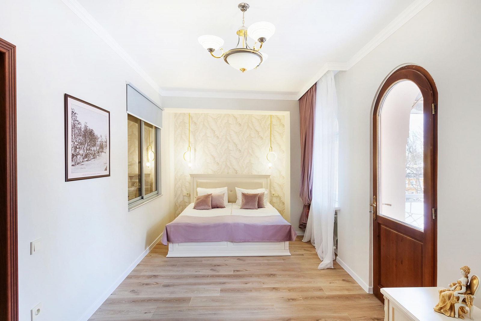 Двухкомнатные апартаменты с балконом расположены на 3 этаже отеля, оформлены в светлых и нежно-розовых тонах, создают атмосферу романтики и комфорта, а также придают номеру легкость и воздушность. Вся мебель в апартаментах выполнена из светлого дерева, подчеркивая нежность интерьера. Номер включает в себя уютную спальню и оборудованную кухню. Кухня укомплектована всем необходимым для приготовления еды - холодильником, плитой, микроволновой печью и посудой. Спальня оборудована удобной кроватью, прикроватными тумбочками, смарт-ТВ, туалетным столиком и мягким пуфом. А ее интерьер дополняет мягкое освещение и стильные элементы декора. Также спальня имеет выход на свой балкон, где вы сможете насладиться утренним кофе или вечерним закатом, отдыхая после насыщенного дня.