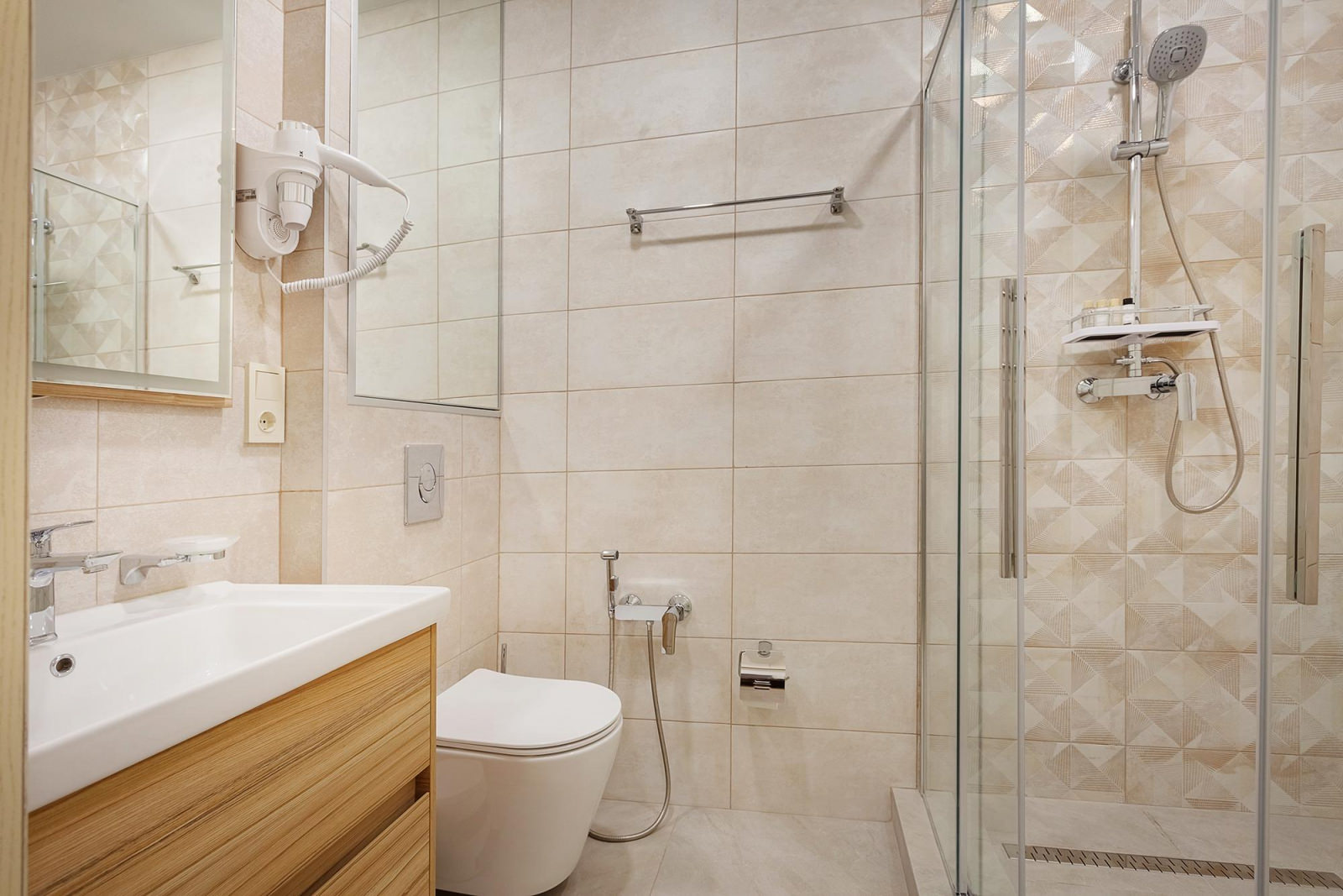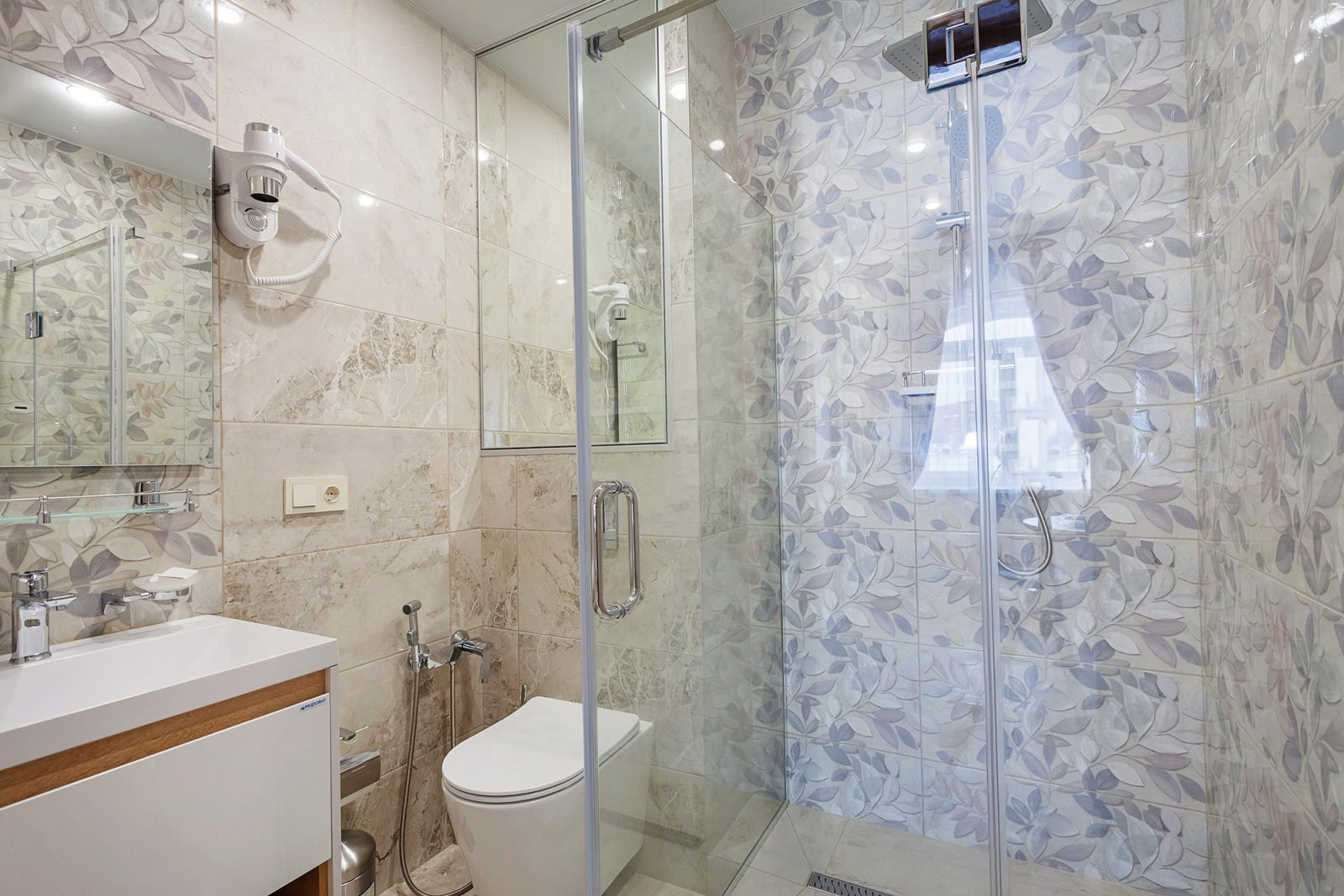 Уютный двухместный номер Джуниор, расположен на третьем этаже отеля, и выполнен в сочетании перламутровых тонов. В номере установлены две комфортные односпальные кровати с ортопедическими матрасами, которые обеспечат качественный сон и отдых, по запросу кровати можно соединить. Интерьер номера дополняет мягкое освещение и стильные элементы декора, придающие пространству особый шарм. Ванная комната оснащена всеми необходимыми банными принадлежностями и современной сантехникой. Для удобства гостей предусмотрена фен, набор полотенец и тапочки.В номере установлен современный телевизор с доступом к широкому выбору каналов, а высокоскоростной Wi-Fi позволит оставаться на связи и быть в курсе последних новостей.