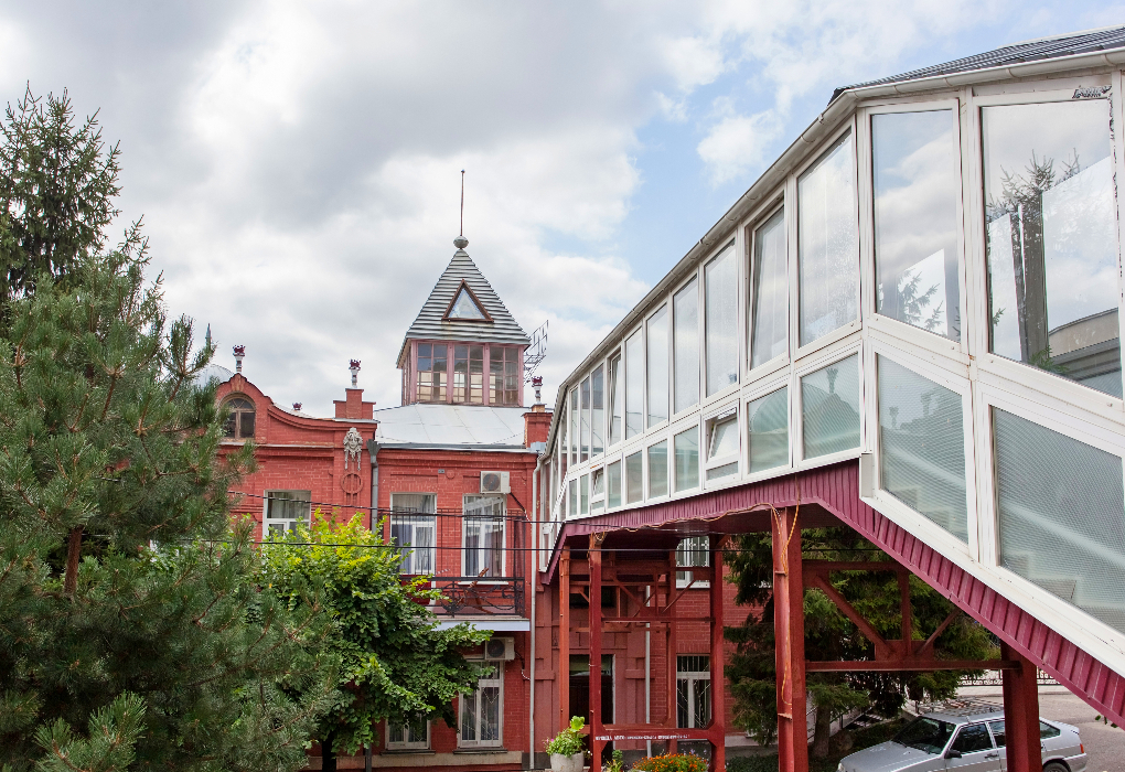 В данном корпусе расположена столовая, процедурный кабинет, приемная врачей и многое другое.