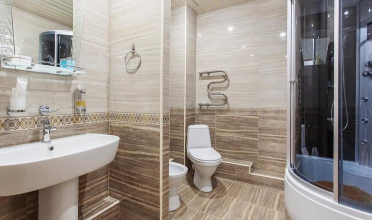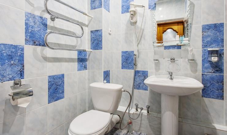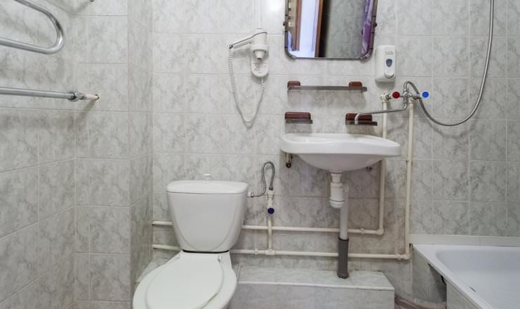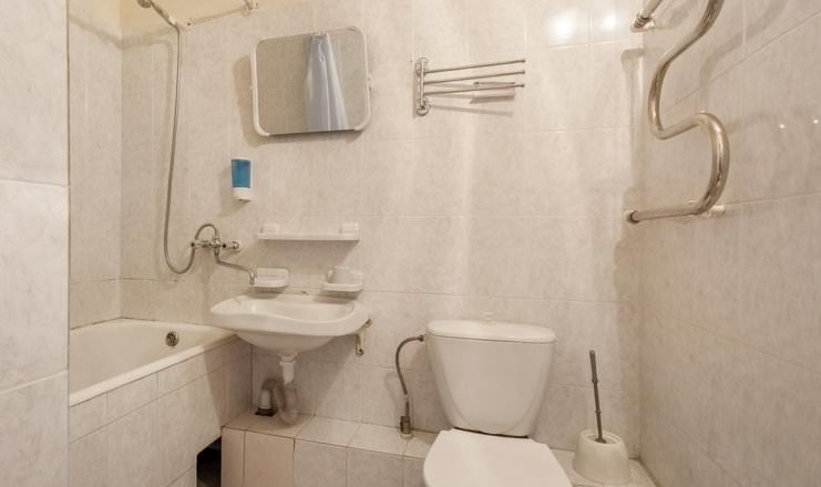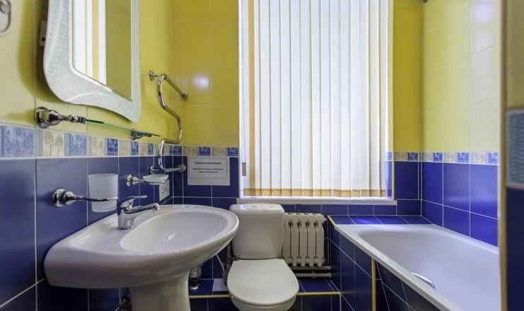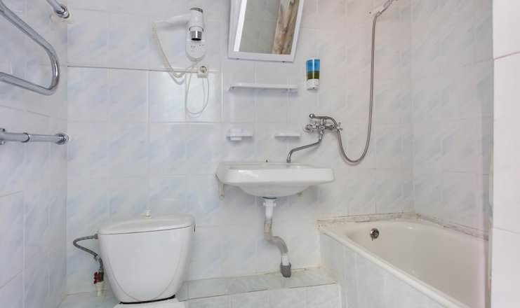 В данном номере имеются ванна, туалет и раковина, которые находятся в санузле.