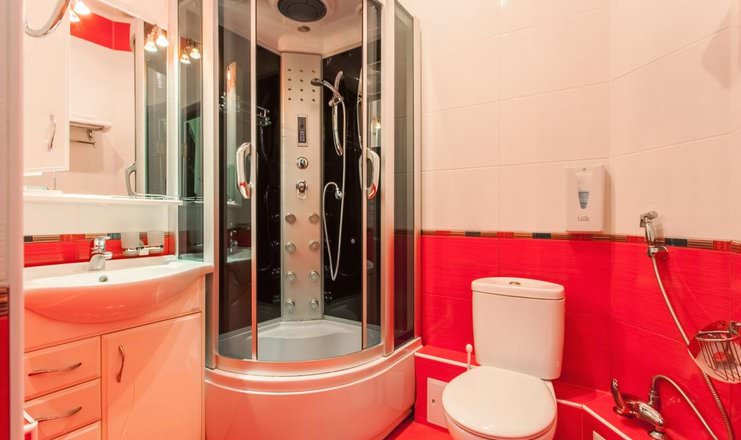 В санузле имеются фен, совмещенный санузел, душевая кабина, туалетный набор. Из электроники в наличии холодильник, кондиционер и электрочайник.