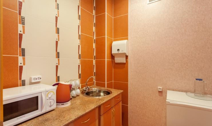 В оснащение входят: телевизор, холодильник, чайный набор, набор посуды и электрочайник.
