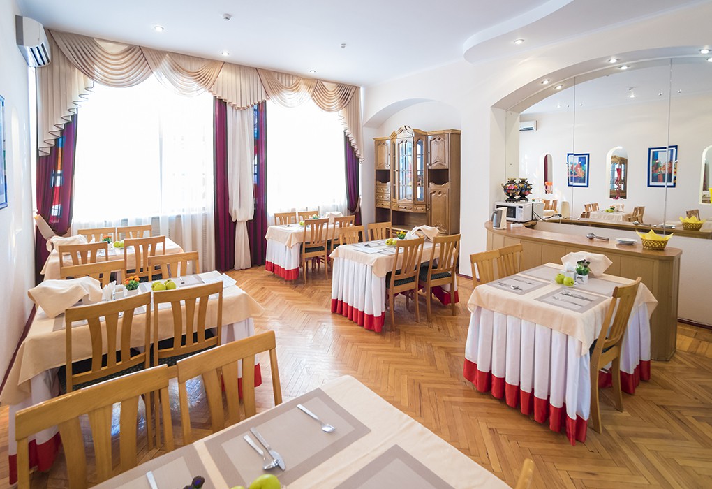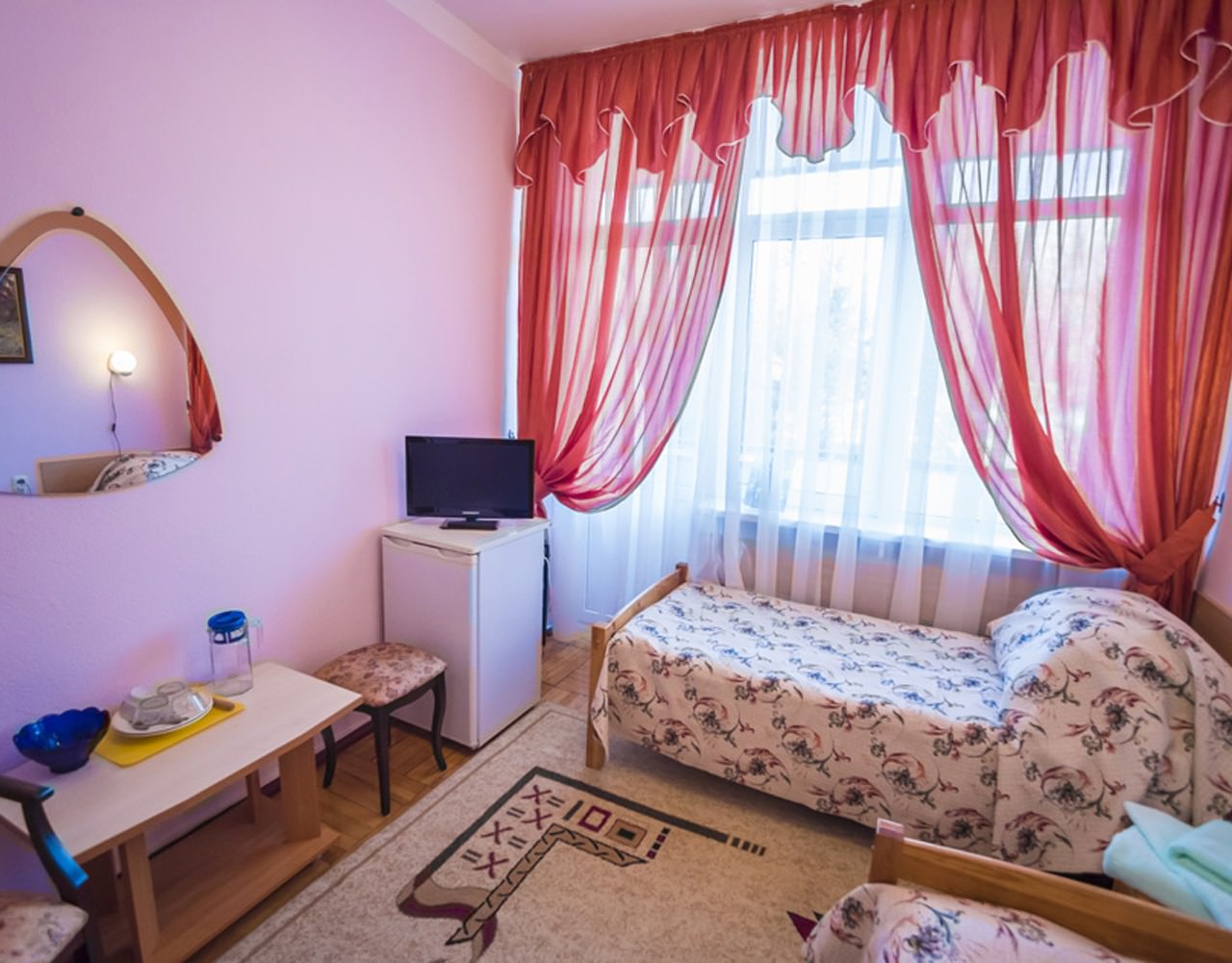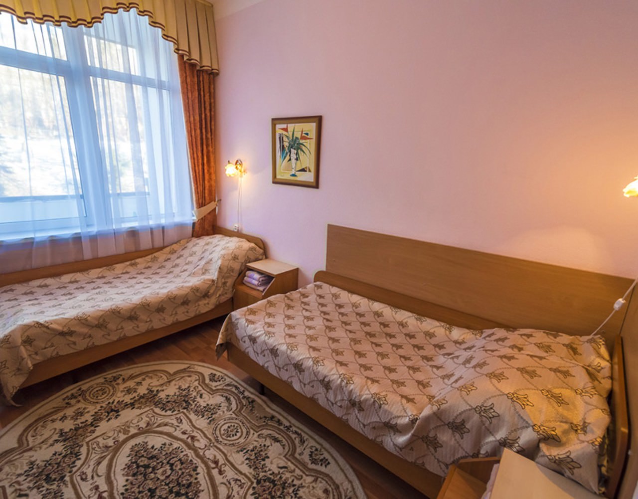 Все корпуса соединены теплым переходом, что позволяет отдыхающим получить лечебные процедуры не выходя из санатория. К услугам отдыхающих номера различных категорий со всеми удобствами. Проживать у нас могут не только взрослые, но и родители с детьми. Дети принимаются с 5 лет. Посещение бассейна строго с 7 лет.