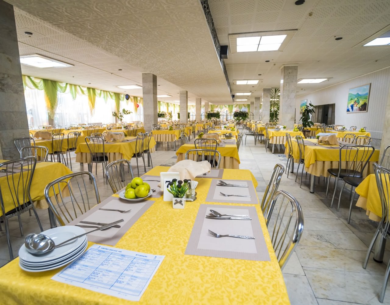 Питание в санатории «Зори Ставрополья» организовано по системе заказного меню. В рацион, независимо от времени года, включаются свежие овощи, блюда из круп и мяса, а также выпечка собственного изготовления.