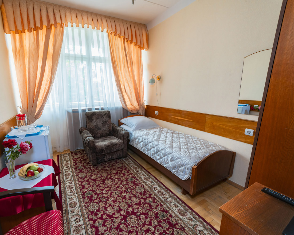 В санатории имеются собственная бальнеолечебница и грязелечебница. Процедура «Общая грязь» включена в стоимость санаторно-курортной путевки.