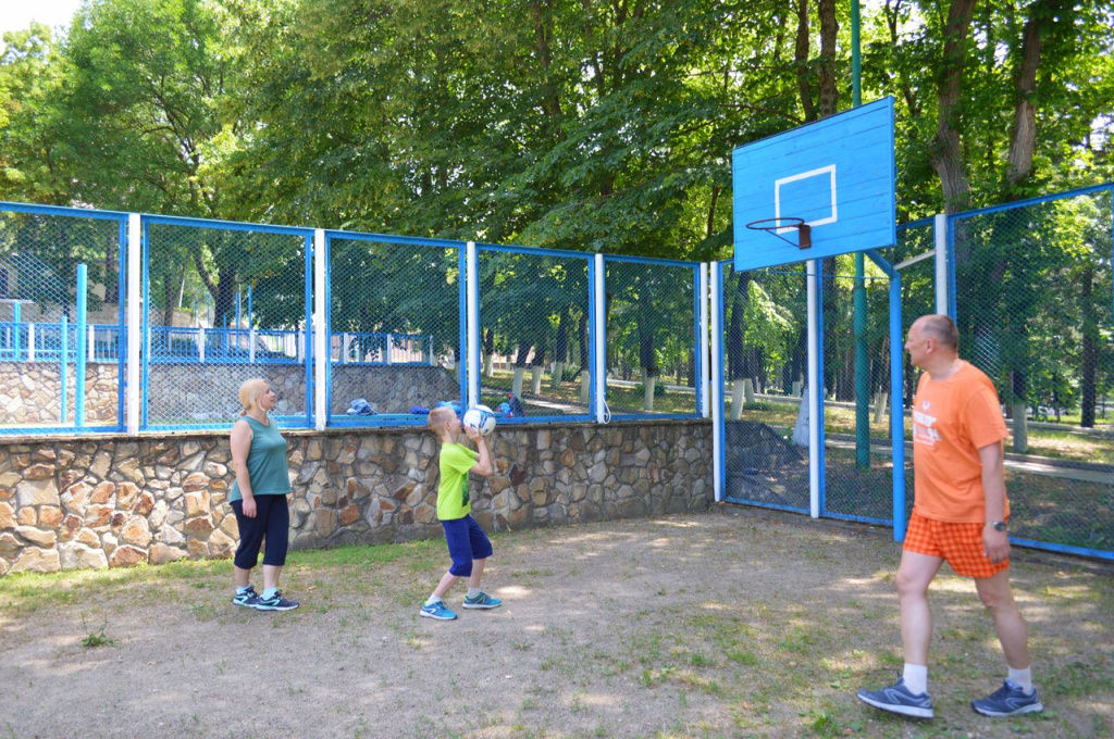 Охраняемая территория с красивым природным ландшафтом, волейбольной площадкой, настольным теннисом и аэросолярием.