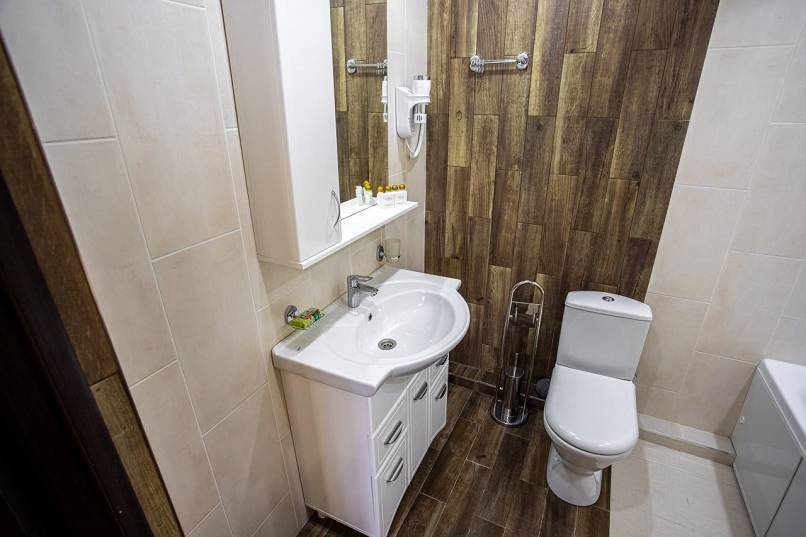 Площадь номера - 35 кв.м. 2 осн. места. 2 доп. места. Балкон. Мебель: вешалка, диван, зеркало, кровать двуспальная, прикроватные тумбочки, стол, стулья, шкаф. Оборудование: гладильная доска, кондиционер, набор посуды, сейф, телевизор, телефон, утюг, холодильник, электрочайник. Санузел: биде, с ванной/душем, тапочки, туалетные принадлежности, фен, халат. Сервис: смена полотенец (1 раз в 5 дней), смена постельного белья (1 раз в 5 дней), уборка номера (ежедневно).