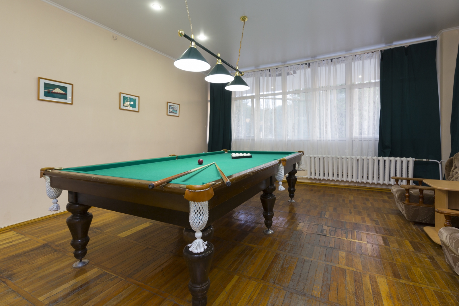 В пансионате есть специальный зал для интересной и азартной игры в бильярд. Зал оформлен стильно и аристократично.