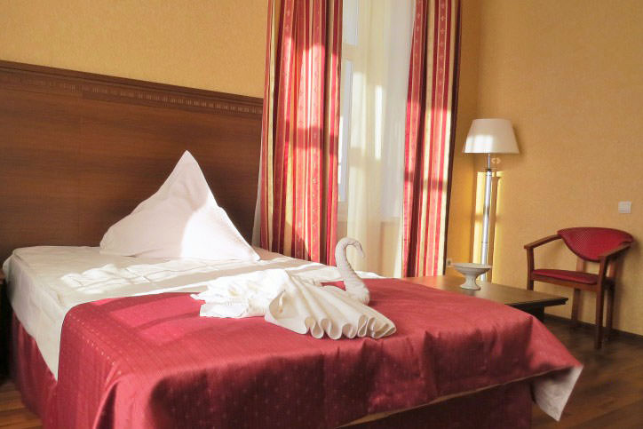Это уютные номера площадью 15 кв.м, которые подходят для проживания одного туриста. Комнаты хорошо оборудованы. Здесь имеется кровать, тумбочка, шкаф и другая мебель.