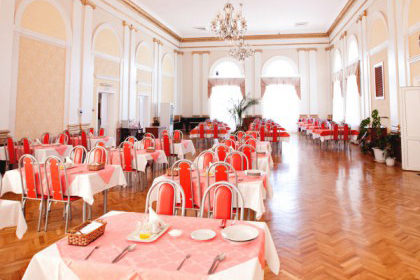 В санатории есть столовая. Это уютное помещение, которое оформлено в классическом стиле. В ассортименте столовой имеются вегетарианские и постные блюда. Каждую неделю для гостей организуются тематические дни и предлагаются оригинальные блюда национальных кухонь. В меню столовой обязательно входят блюда из мяса, рыбы, крупяные и молочные блюда. В столовой есть диетические блюда с номером диеты, которая назначается врачом диетологом. Уютная обстановка, красивый интерьер, хорошее обслуживание и вкусная еда способствуют хорошему аппетиту и прекрасному настроению.